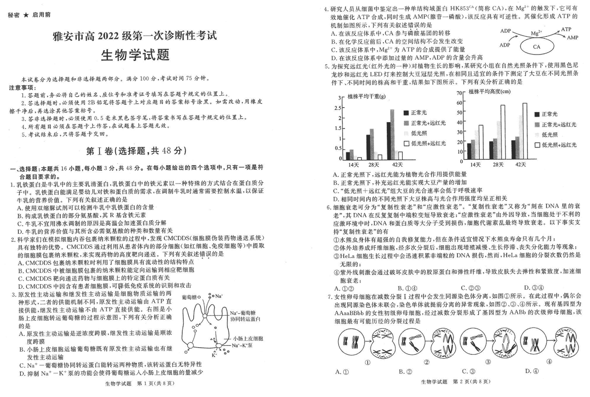 四川九市一诊2025届高三12月第一次诊断生物考试已于近日开考,为方便考生考后及时查看考试情况,查漏补缺、弥补不足,本文整理了试题答案解析相关信息!