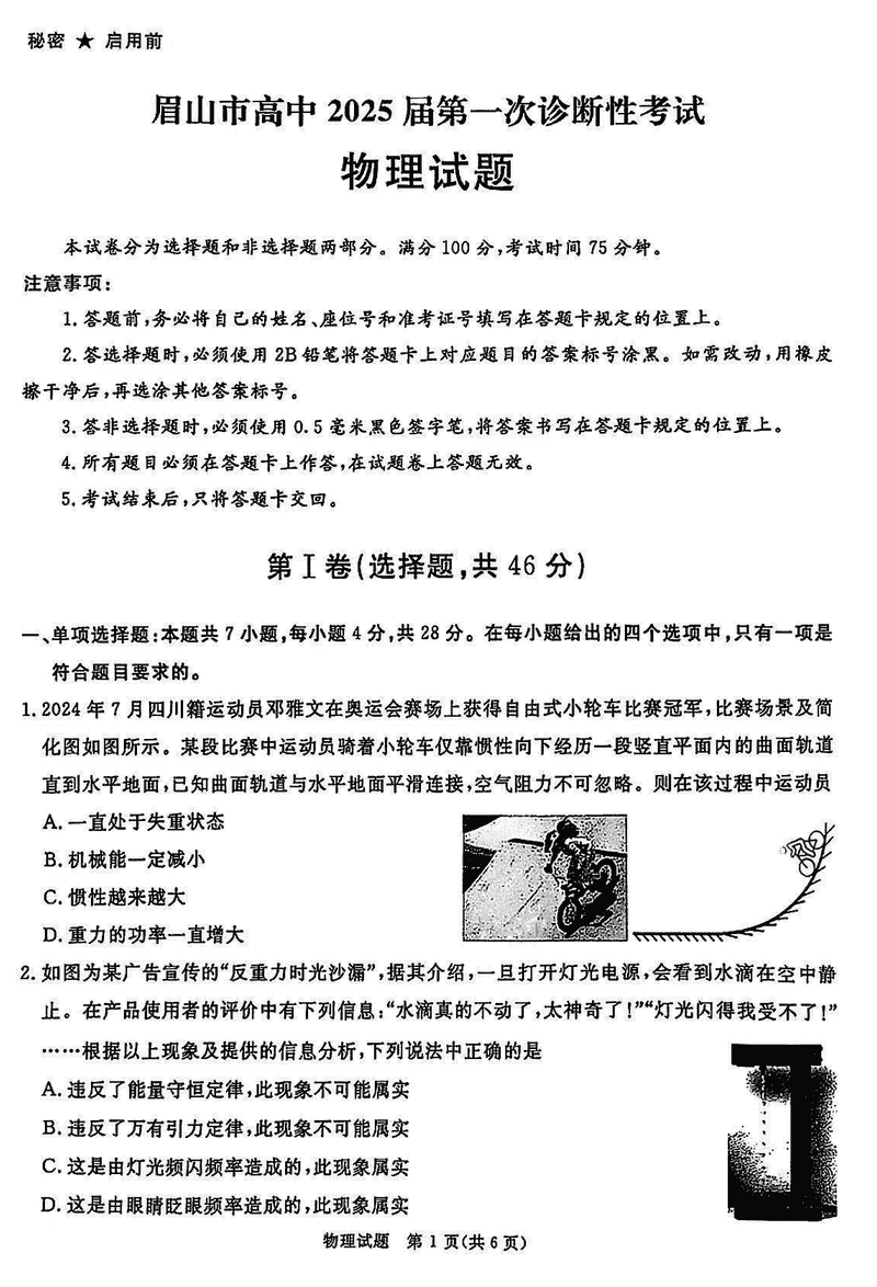 四川九市一诊2025届高三12月第一次诊断物理考试已于近日开考,为方便考生考后及时查看考试情况,查漏补缺、弥补不足,本文整理了试题答案解析相关信息!