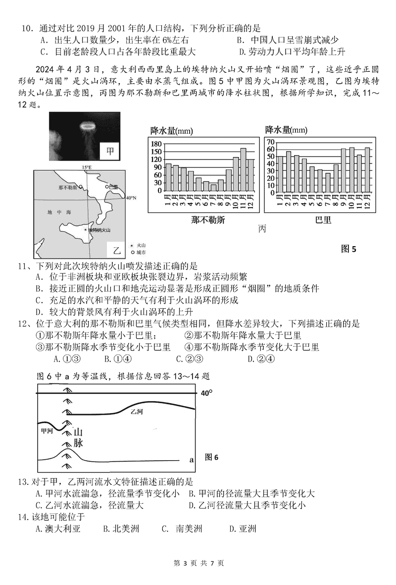 东莞七校联考2025届高三上学期12月月考地理试题及答案
