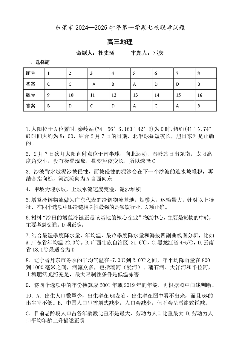 东莞七校联考2025届高三上学期12月月考地理考试已于近日开考,为方便考生考后及时查看考试情况,查漏补缺、弥补不足,本文整理了试题答案解析相关信息!