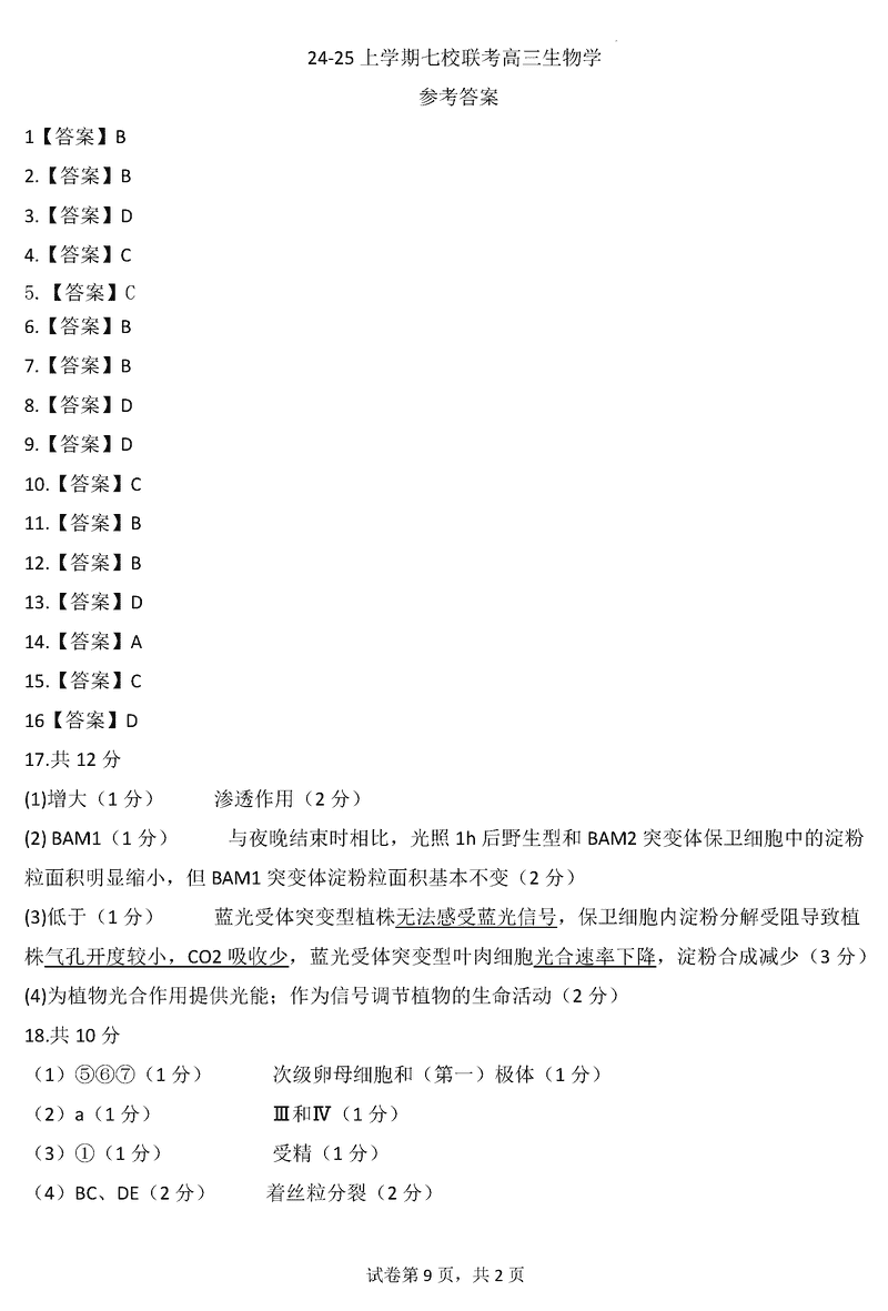 东莞七校联考2025届高三上学期12月月考生物考试已于近日开考,为方便考生考后及时查看考试情况,查漏补缺、弥补不足,本文整理了试题答案解析相关信息!