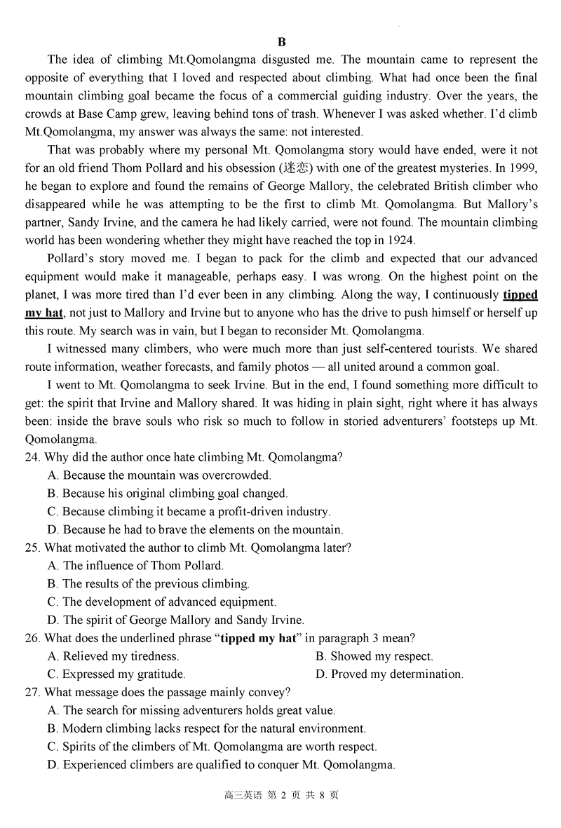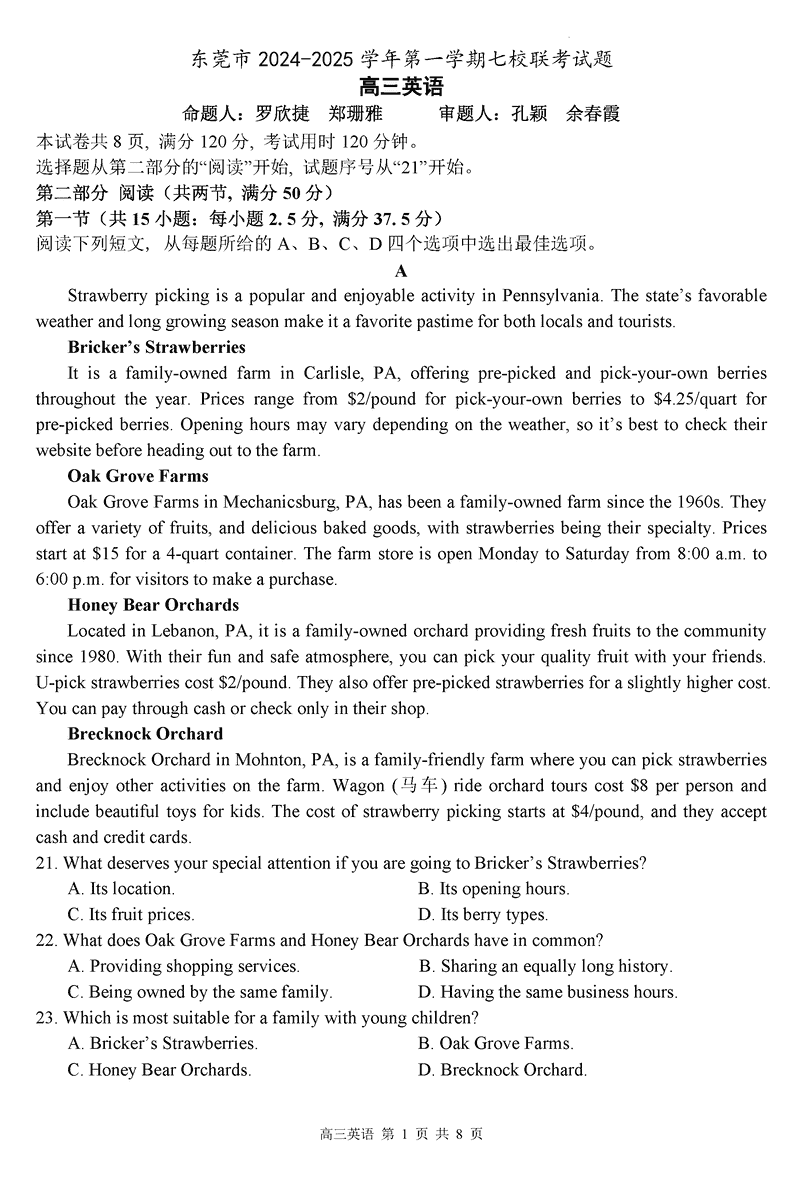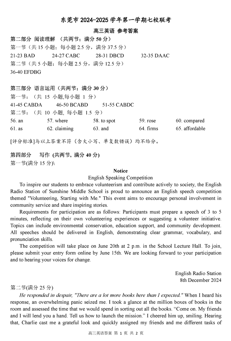 东莞七校联考2025届高三上学期12月月考英语试题及答案