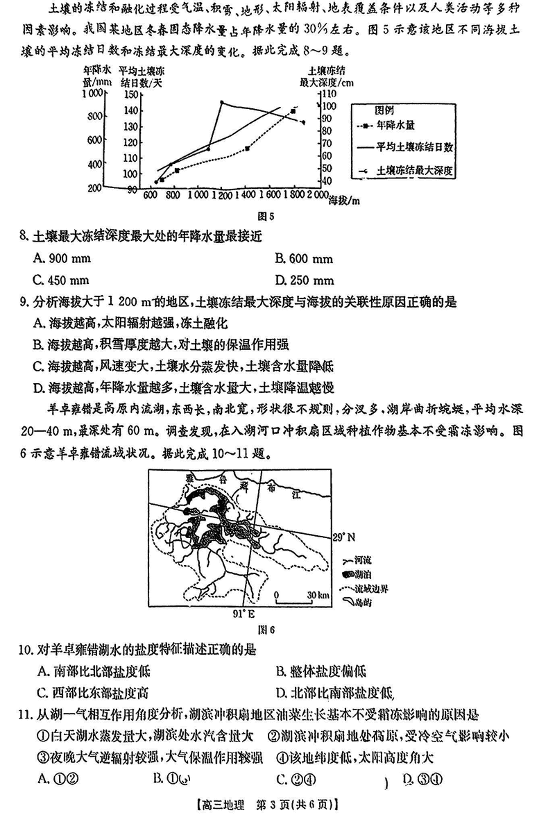 2024年江西三新协同教研共同体高三12月联考地理试题及答案
