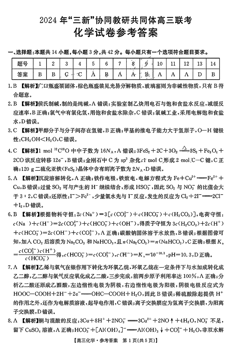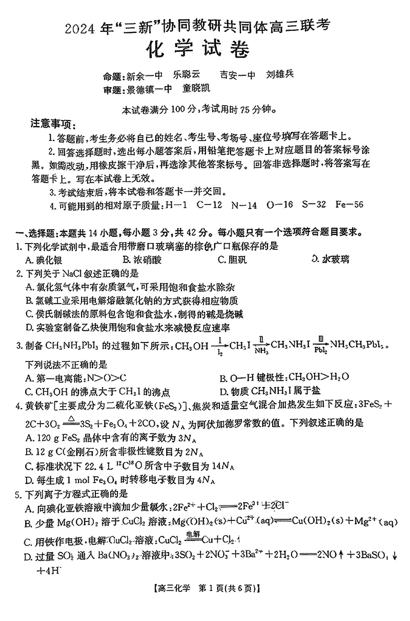 2024年江西三新协同教研共同体高三12月联考化学考试已于近日开考,为方便考生考后及时查看考试情况,查漏补缺、弥补不足,本文整理了试题答案解析相关信息!