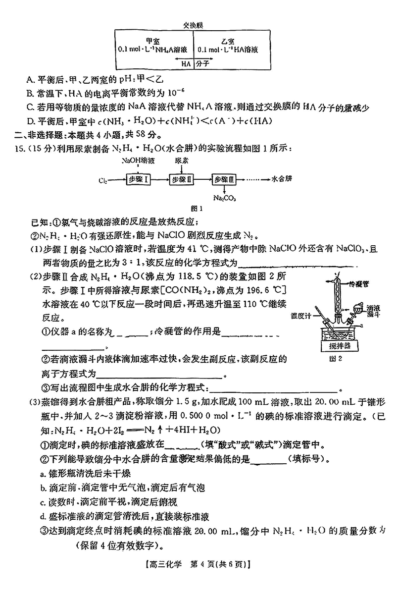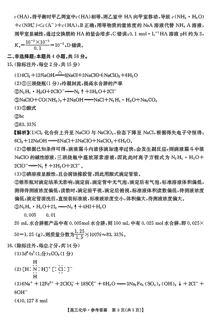2024年江西三新协同教研共同体高三12月联考化学试题及答案