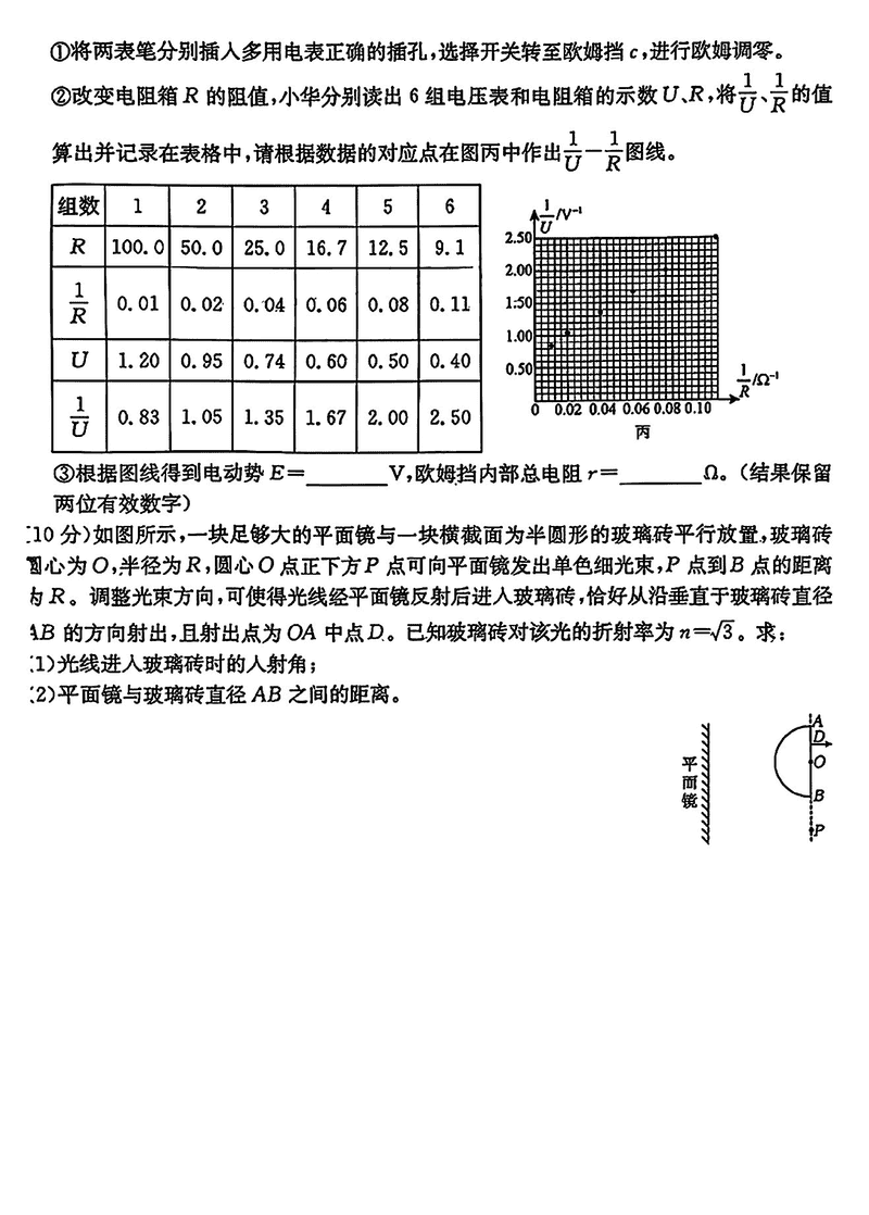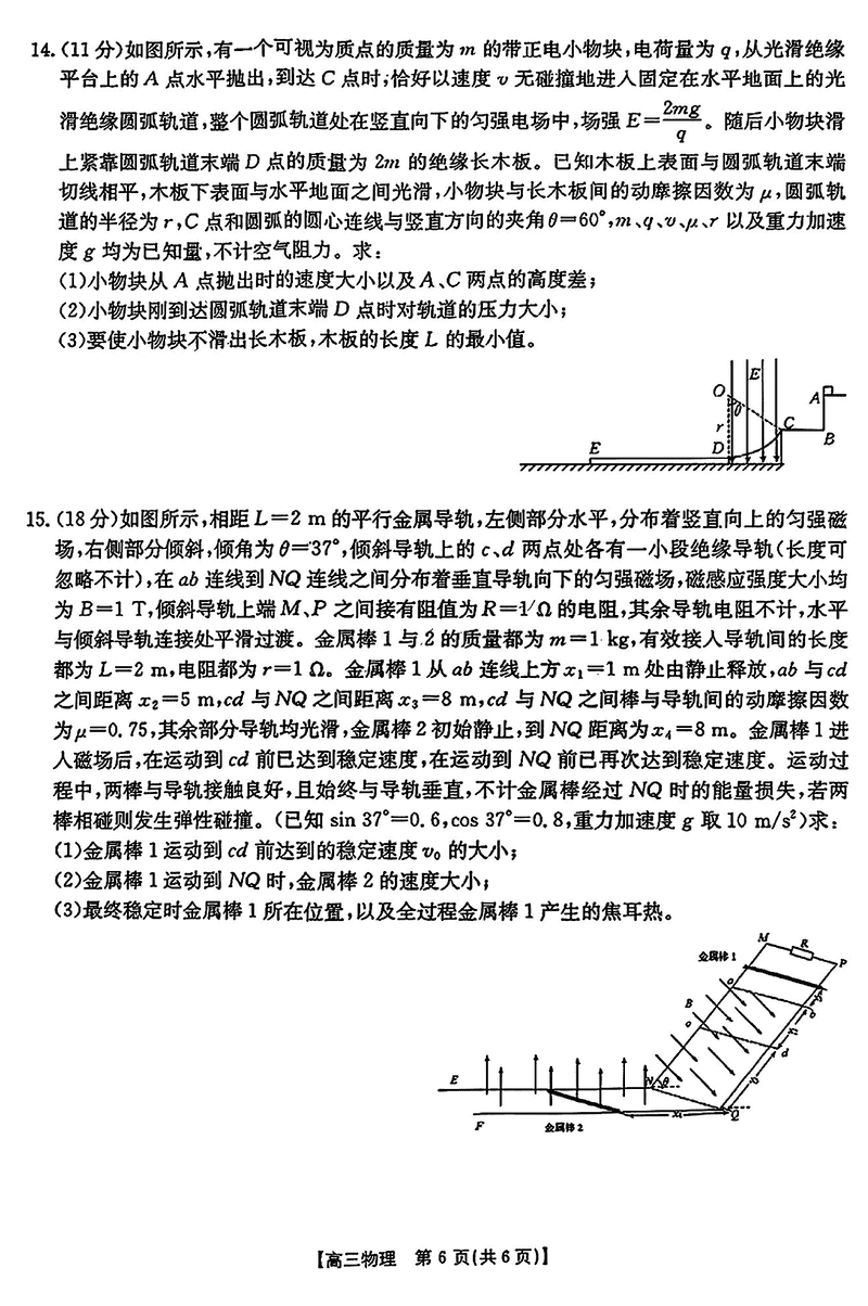 2024年江西三新协同教研共同体高三12月联考物理试题及答案