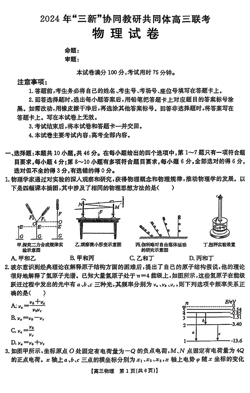 2024年江西三新协同教研共同体高三12月联考物理考试已于近日开考,为方便考生考后及时查看考试情况,查漏补缺、弥补不足,本文整理了试题答案解析相关信息!