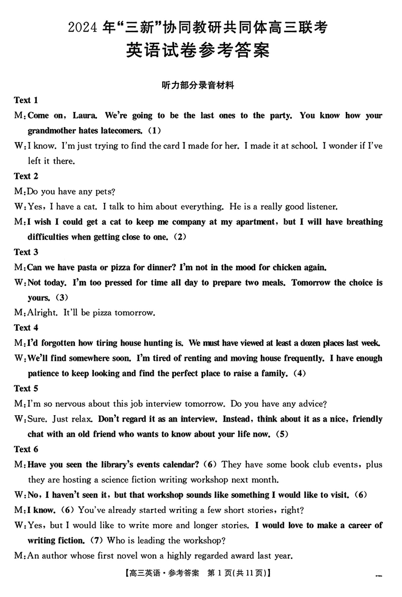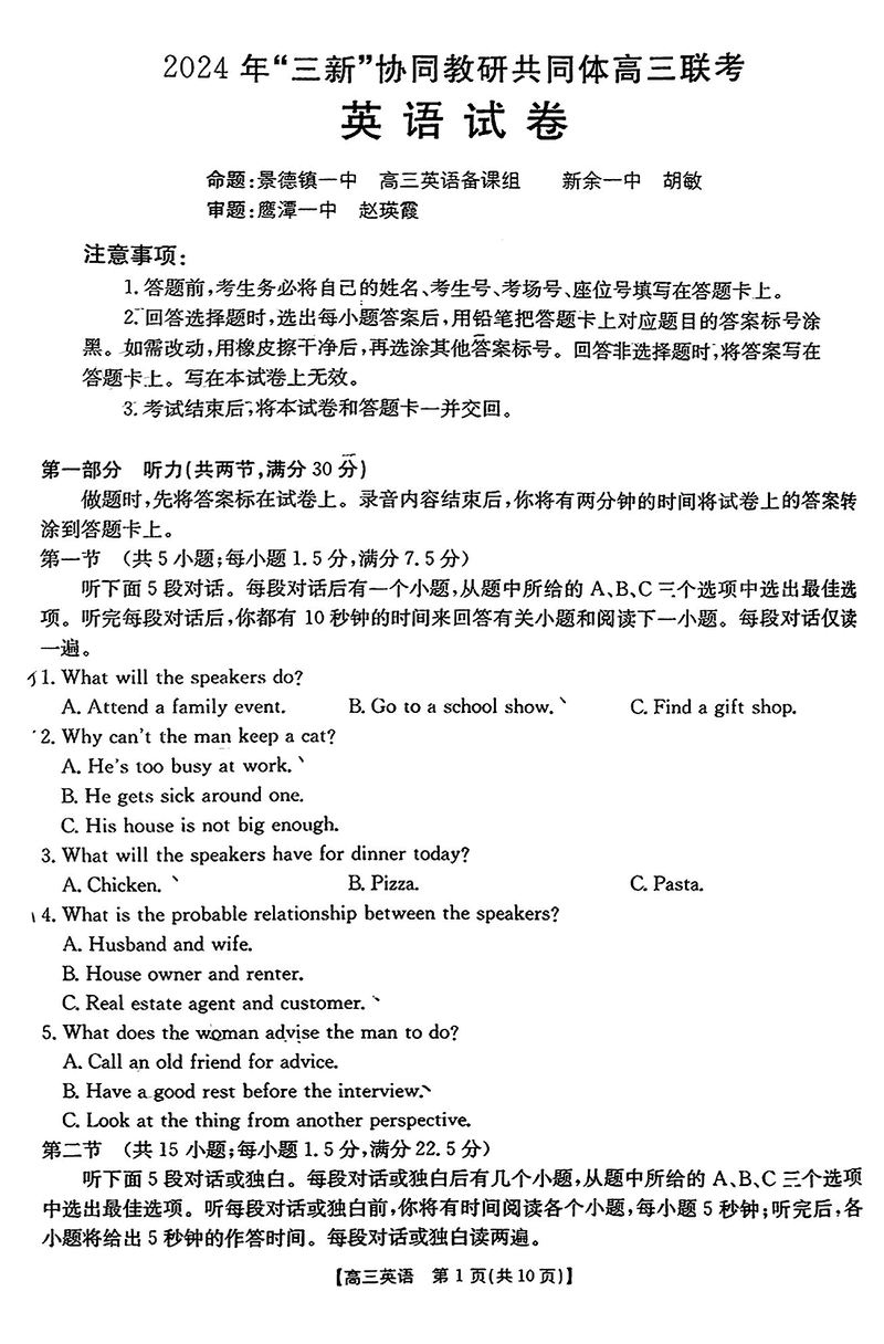 2024年江西三新协同教研共同体高三12月联考英语考试已于近日开考,为方便考生考后及时查看考试情况,查漏补缺、弥补不足,本文整理了试题答案解析相关信息!