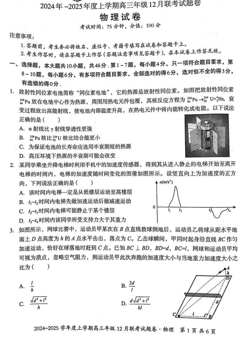 广西邕衡教育名校联盟2025届高三年级12月联考物理考试已于近日开考,为方便考生考后及时查看考试情况,查漏补缺、弥补不足,本文整理了试题答案解析相关信息!