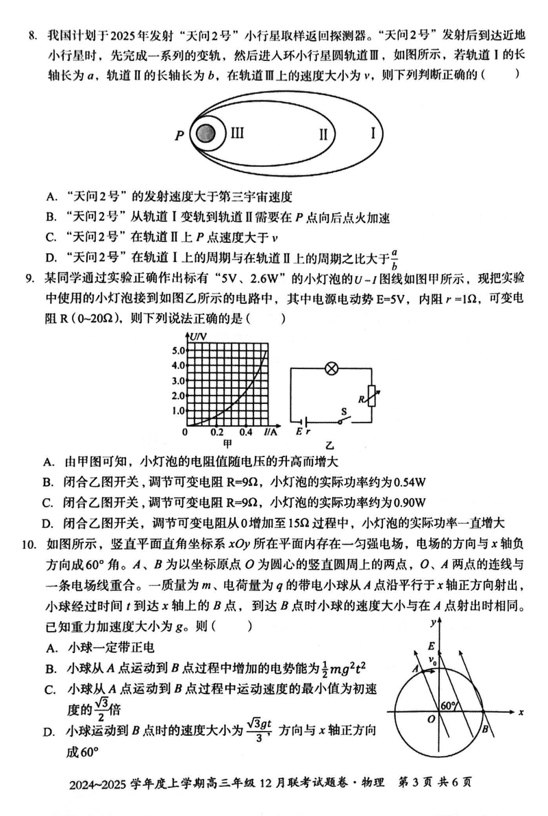 广西邕衡教育名校联盟2025届高三年级12月联考物理试题及答案