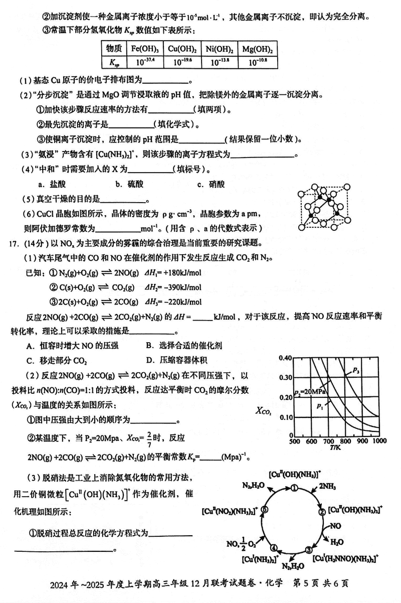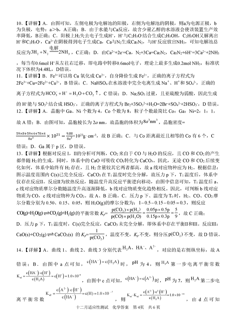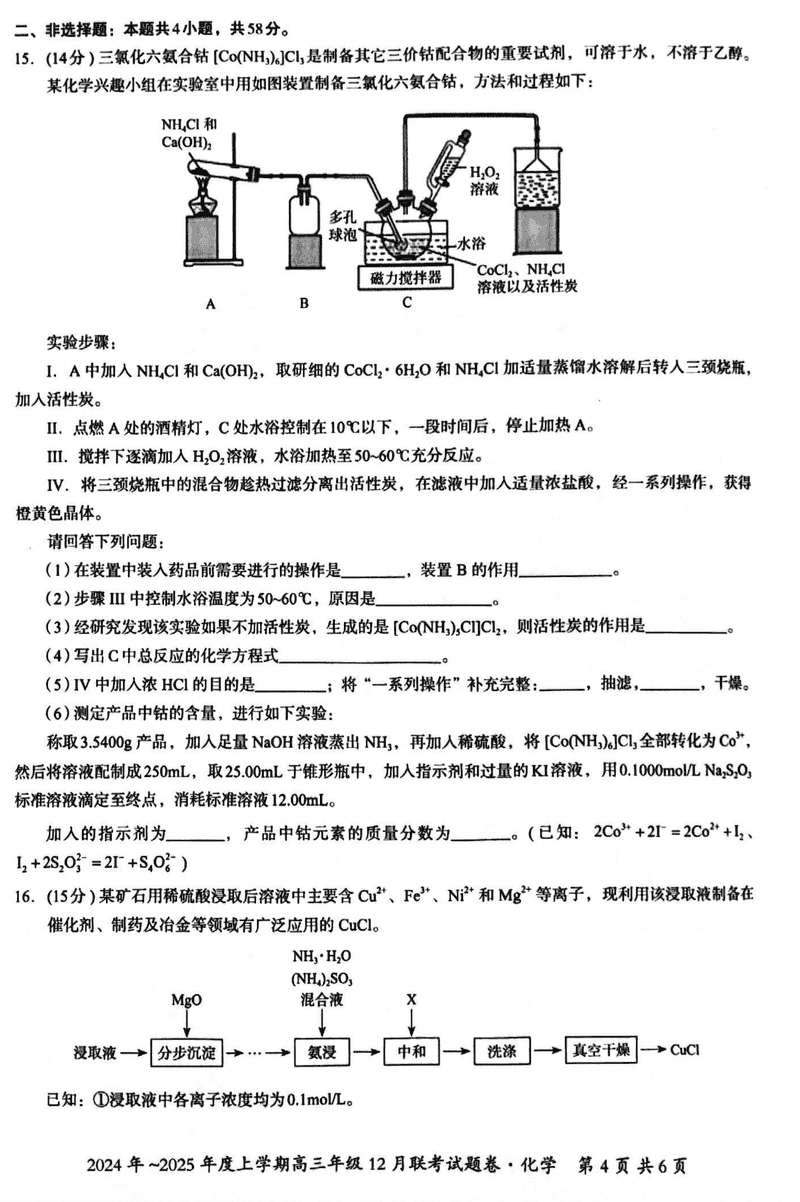 广西邕衡教育名校联盟2025届高三年级12月联考化学试题及答案