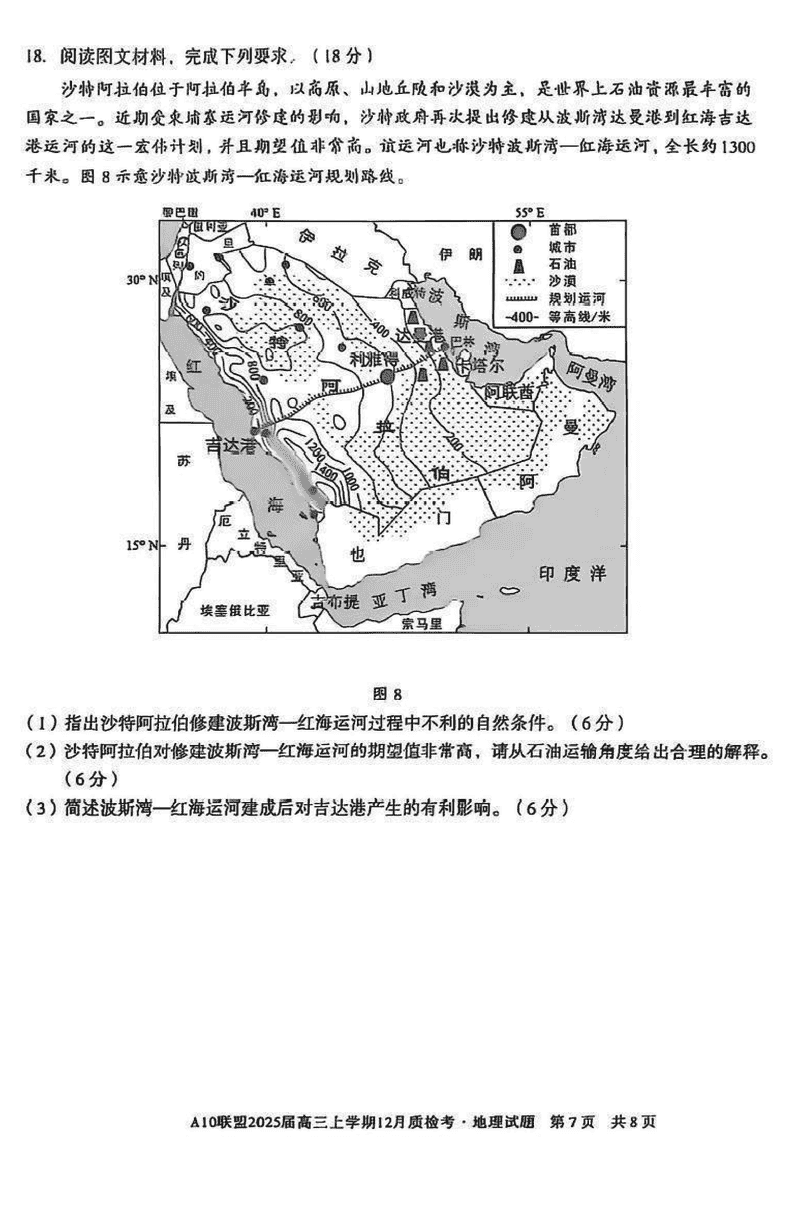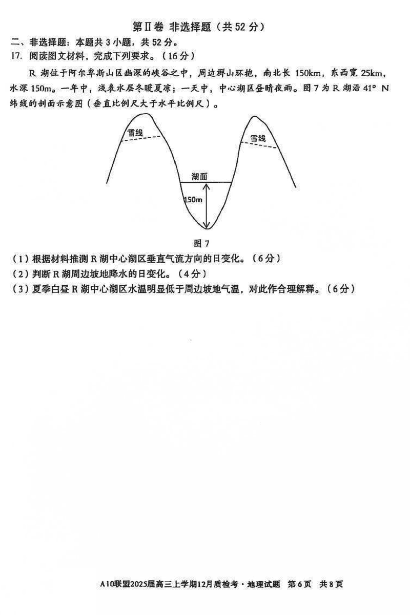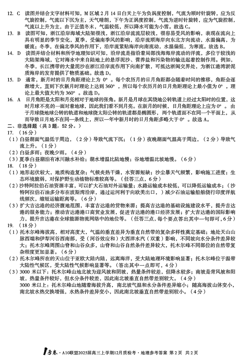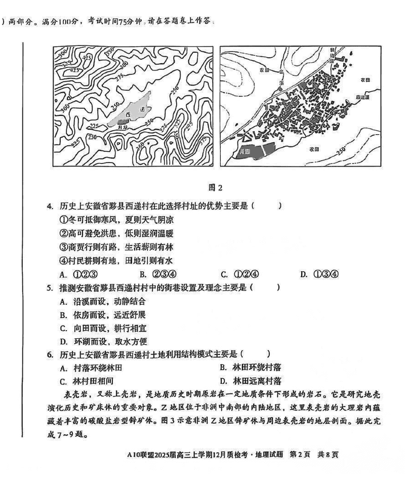 安徽省1号卷A10联盟2025届高三上学期12月质检地理试题及答案