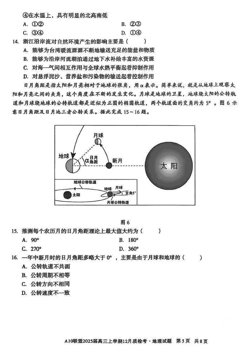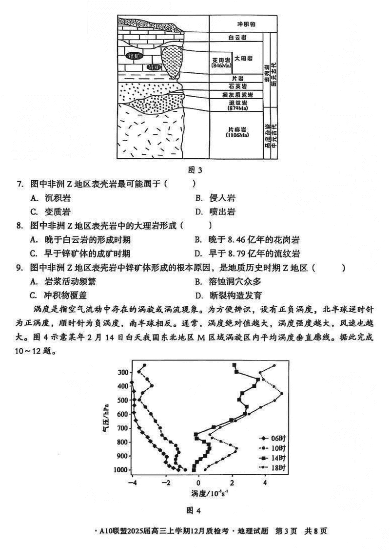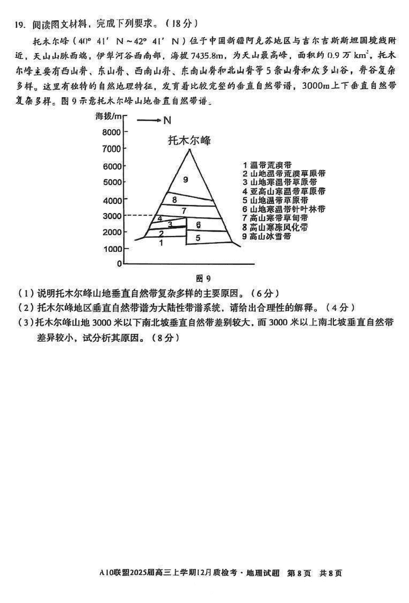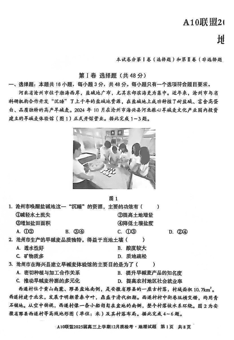 安徽省1号卷A10联盟2025届高三上学期12月质检地理试题及答案