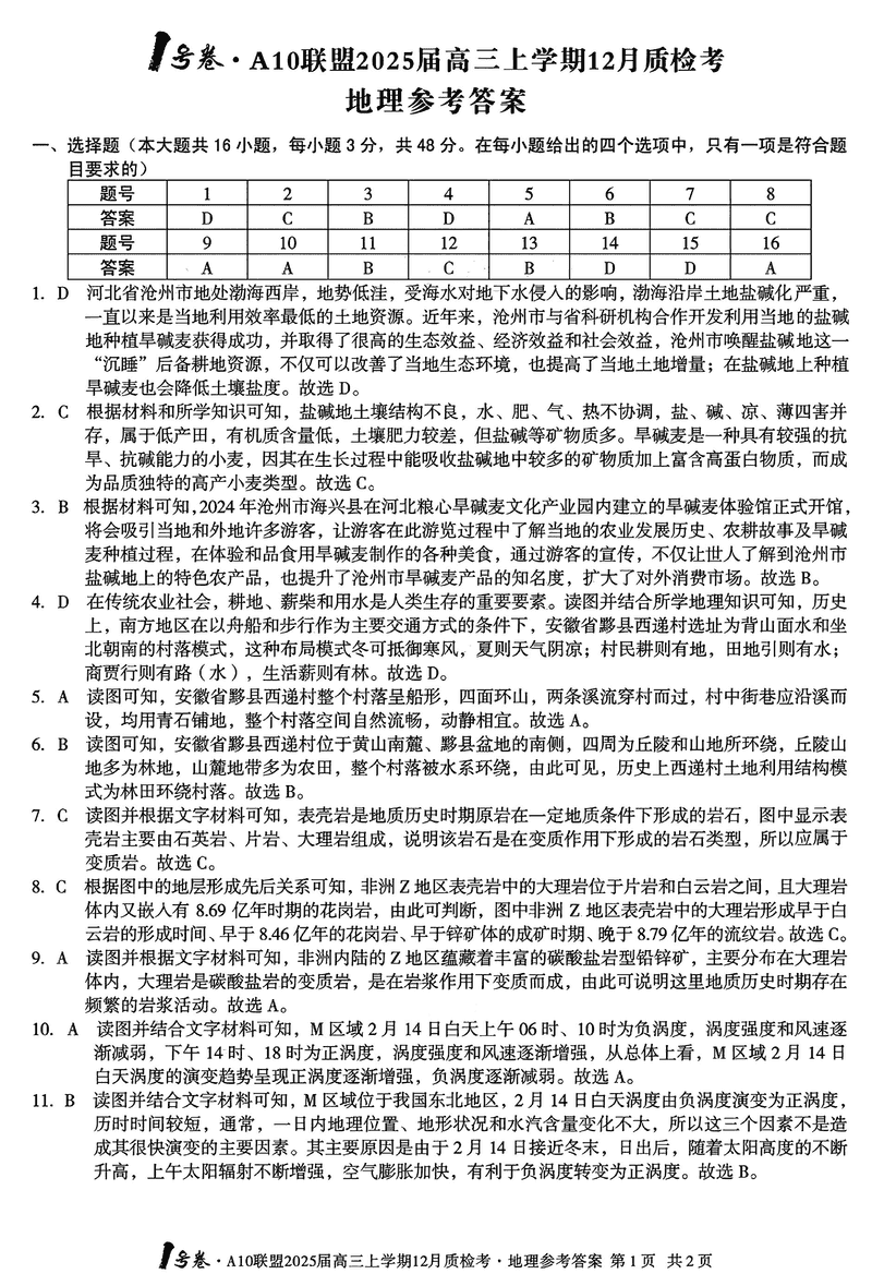 安徽省1号卷A10联盟2025届高三上学期12月质检地理考试已于近日开考,为方便考生考后及时查看考试情况,查漏补缺、弥补不足,本文整理了试题答案解析相关信息!