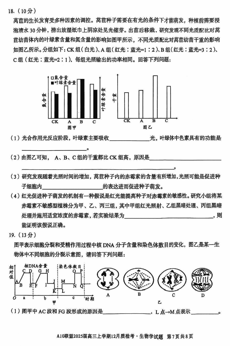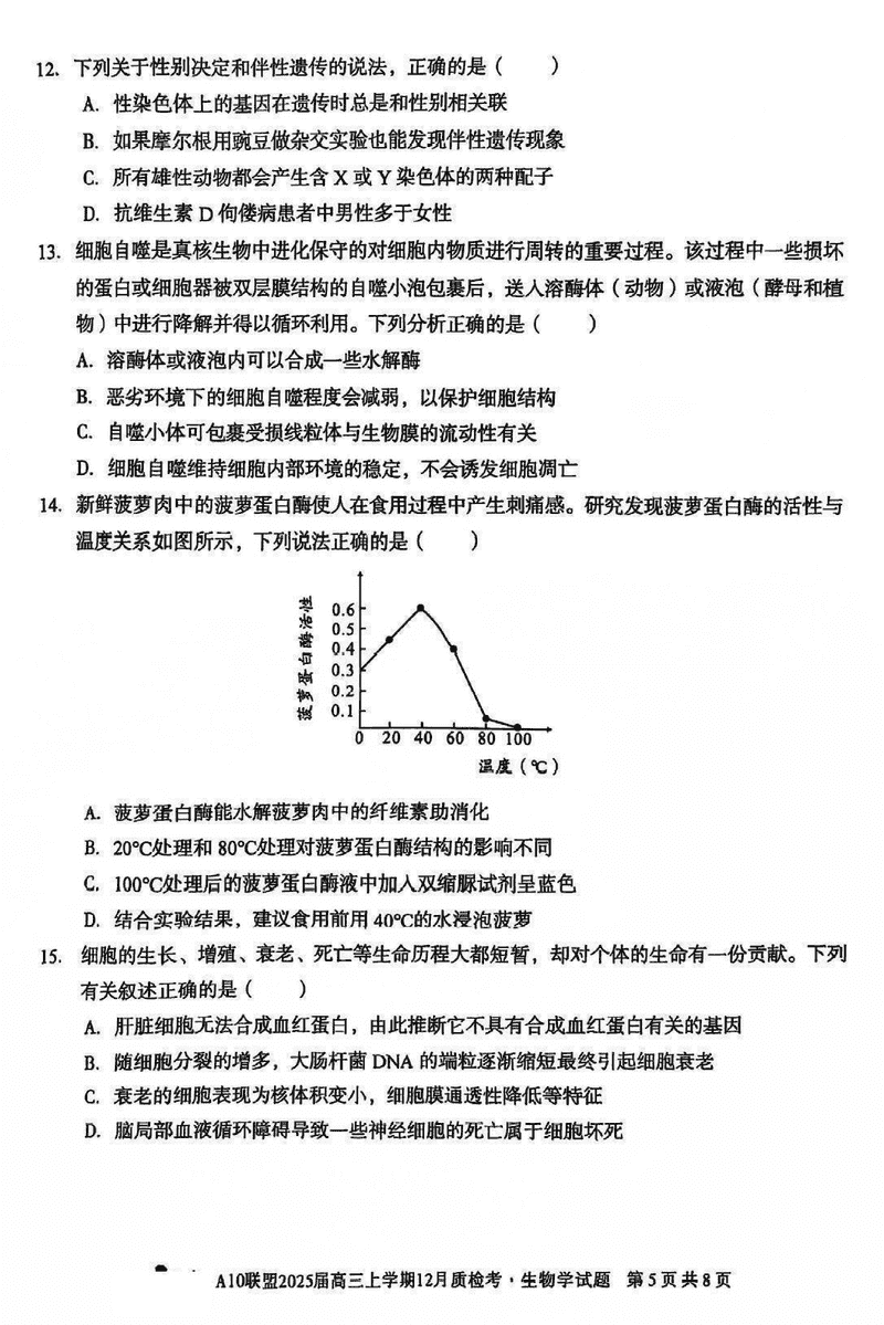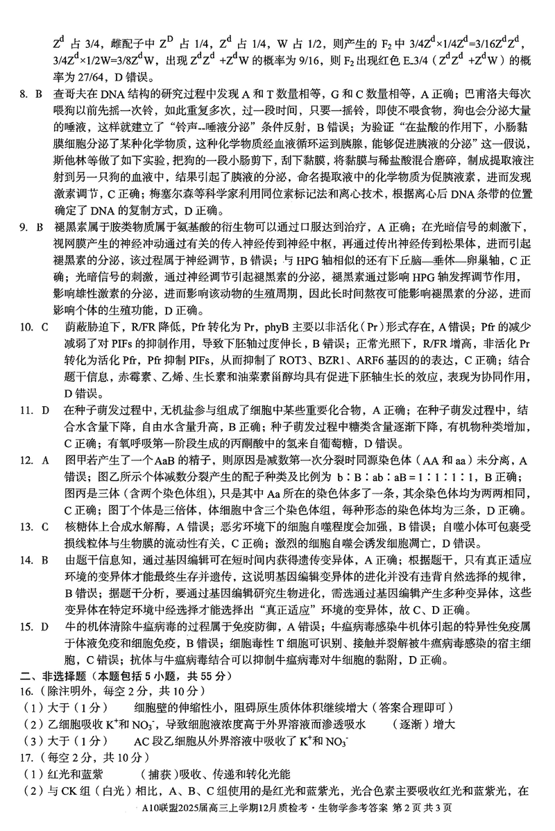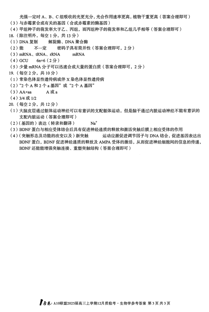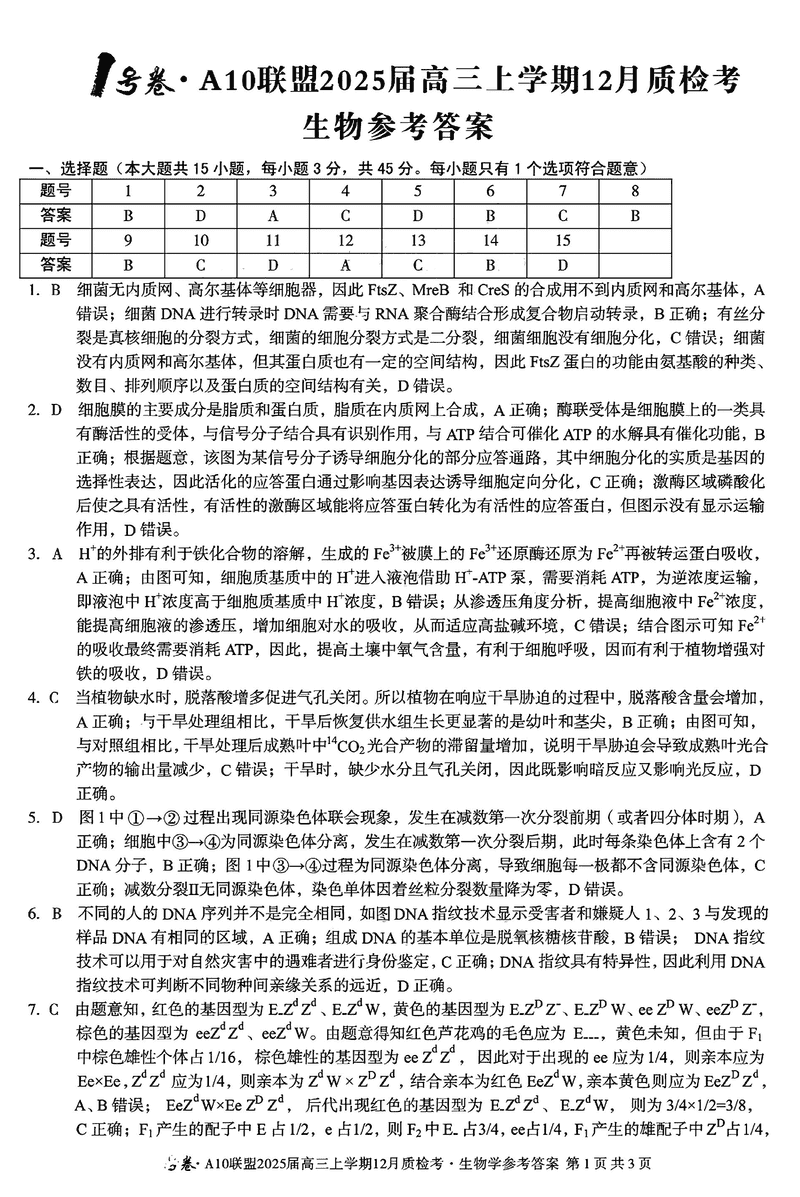 安徽省1号卷A10联盟2025届高三上学期12月质检生物考试已于近日开考,为方便考生考后及时查看考试情况,查漏补缺、弥补不足,本文整理了试题答案解析相关信息!