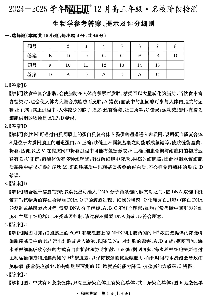 安徽2024-2025学年耀正优12月高三名校阶段检测生物考试已于近日开考,为方便考生考后及时查看考试情况,查漏补缺、弥补不足,本文整理了试题答案解析相关信息!