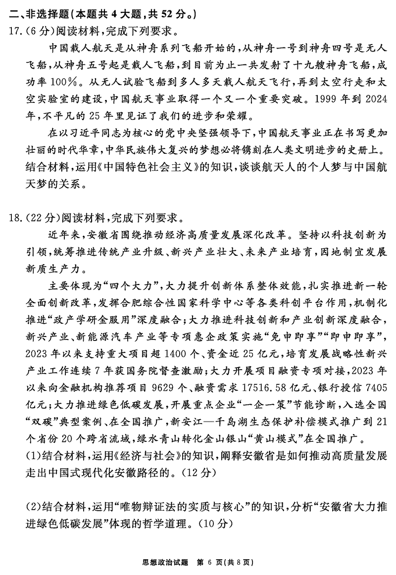 安徽2024-2025学年耀正优12月高三名校阶段检测政治试题及答案
