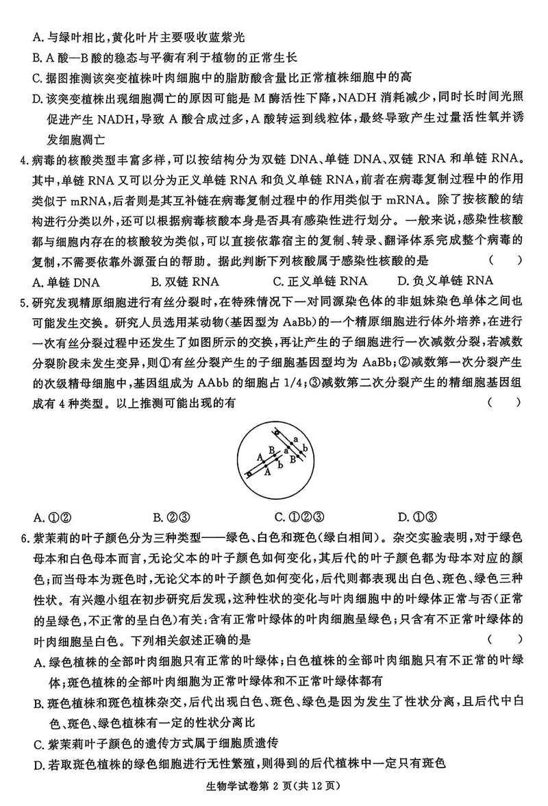 安徽2024-2025学年耀正优12月高三名校阶段检测生物考试已于近日开考,为方便考生考后及时查看考试情况,查漏补缺、弥补不足,本文整理了试题答案解析相关信息!