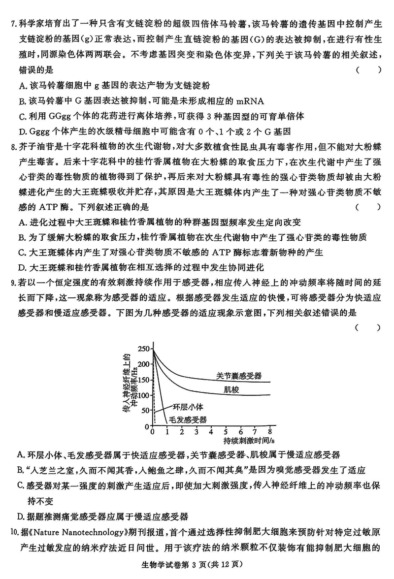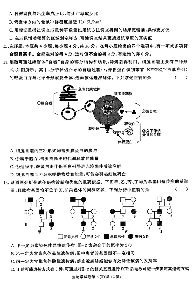 湖南省名校教育联盟·2025届高三12月大联考生物试题及答案