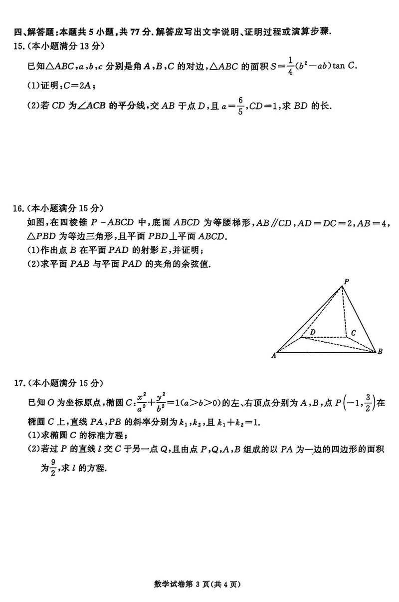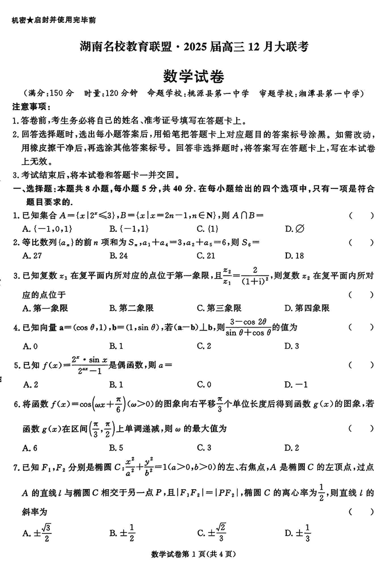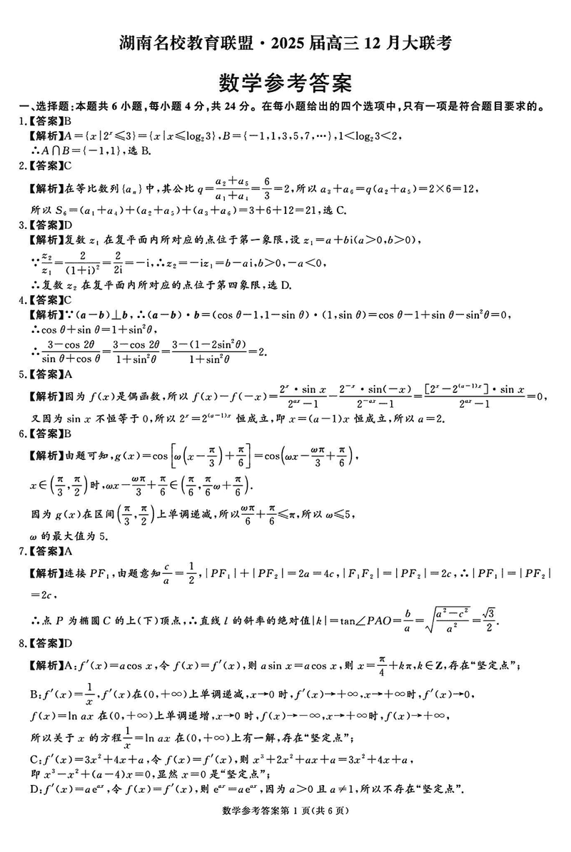 湖南省名校教育联盟·2025届高三12月大联考数学试题及答案