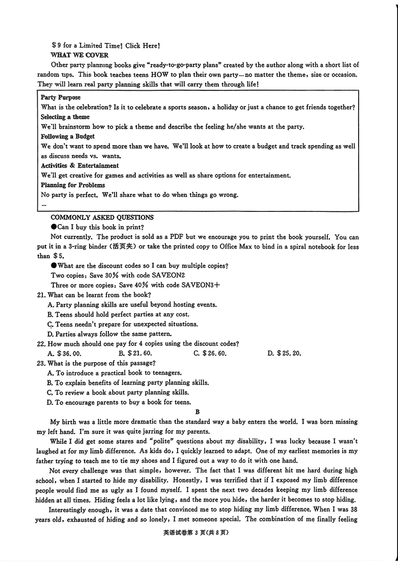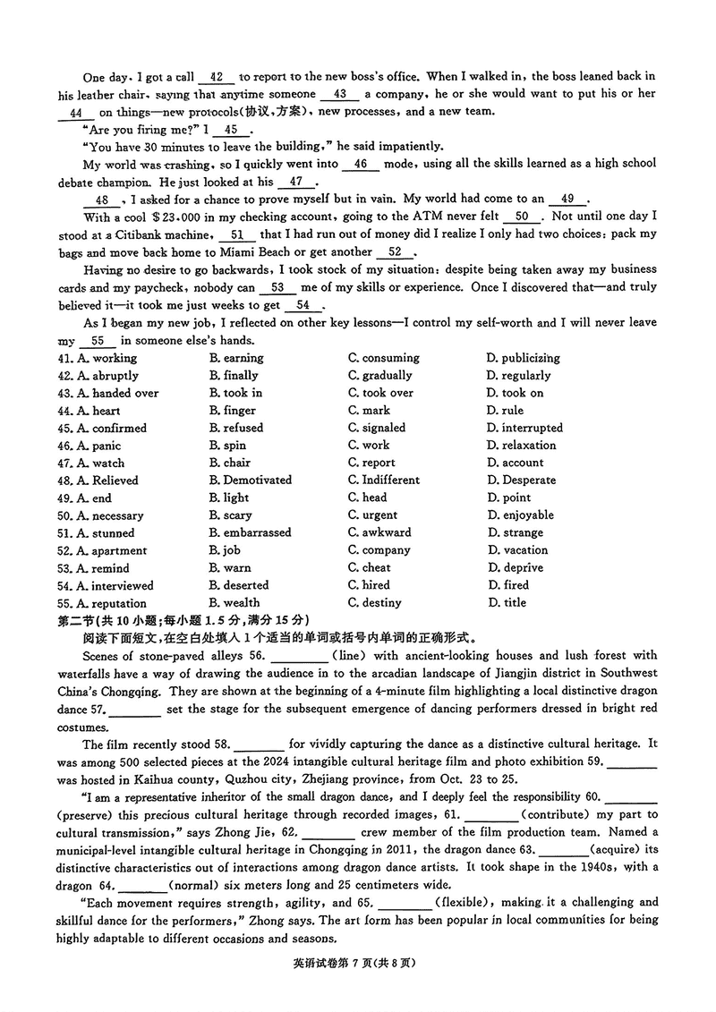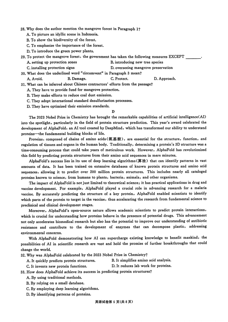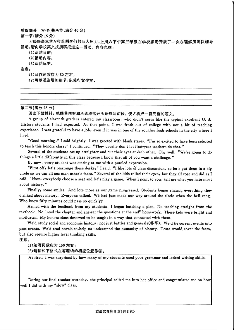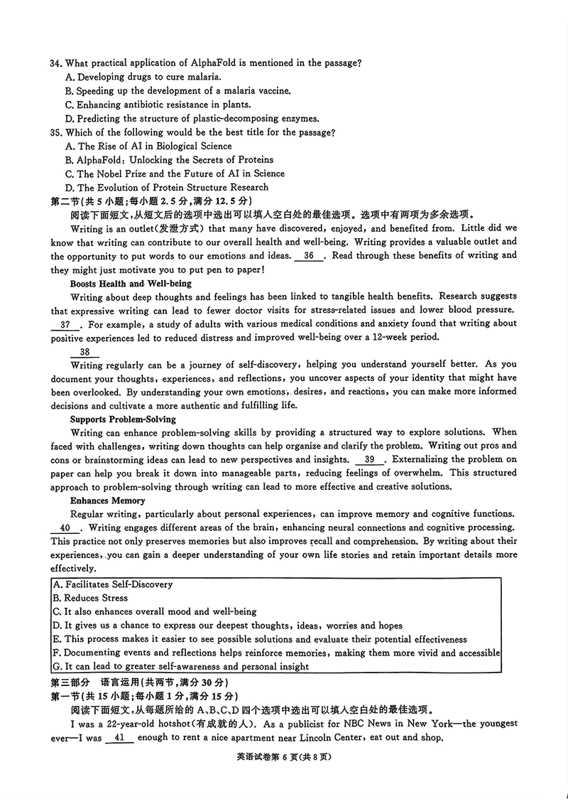 湖南 英语试题
