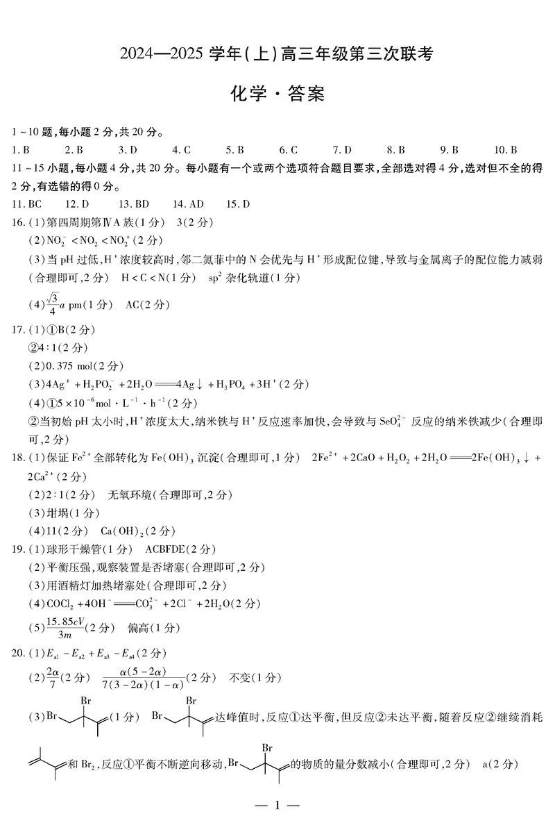 山东齐鲁名校联盟天一大联考2024年12月高三第三次联考化学考试已于近日开考,为方便考生考后及时查看考试情况,查漏补缺、弥补不足,本文整理了试题答案解析相关信息!