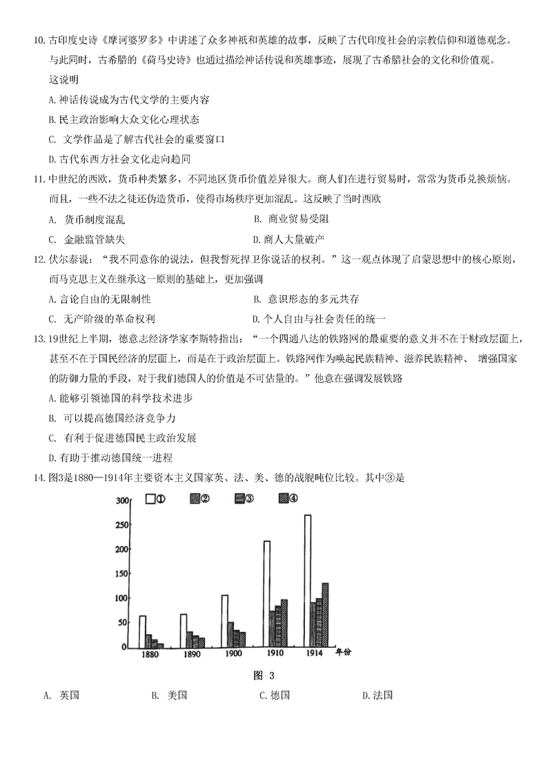 山东齐鲁名校联盟天一大联考2024年12月高三第三次联考历史试题及答案