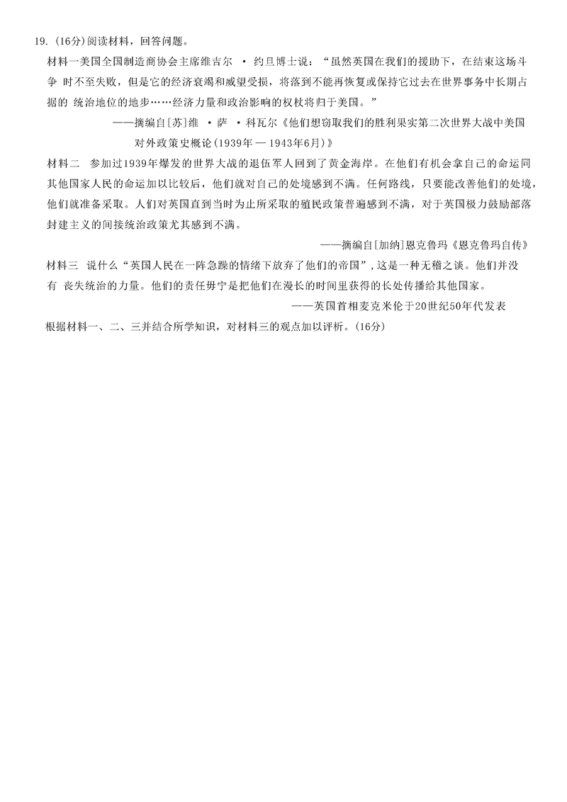 山东齐鲁名校联盟天一大联考2024年12月高三第三次联考历史考试已于近日开考,为方便考生考后及时查看考试情况,查漏补缺、弥补不足,本文整理了试题答案解析相关信息!