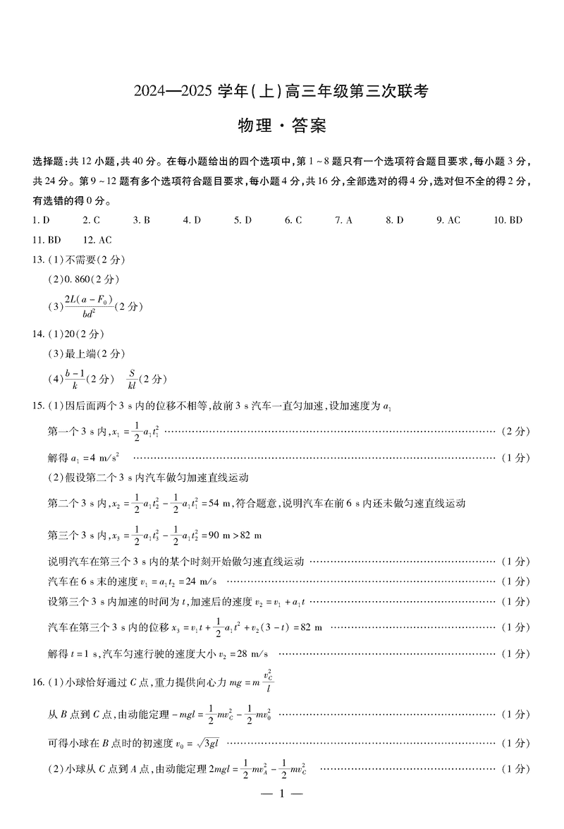 山东齐鲁名校联盟天一大联考2024年12月高三第三次联考物理考试已于近日开考,为方便考生考后及时查看考试情况,查漏补缺、弥补不足,本文整理了试题答案解析相关信息!