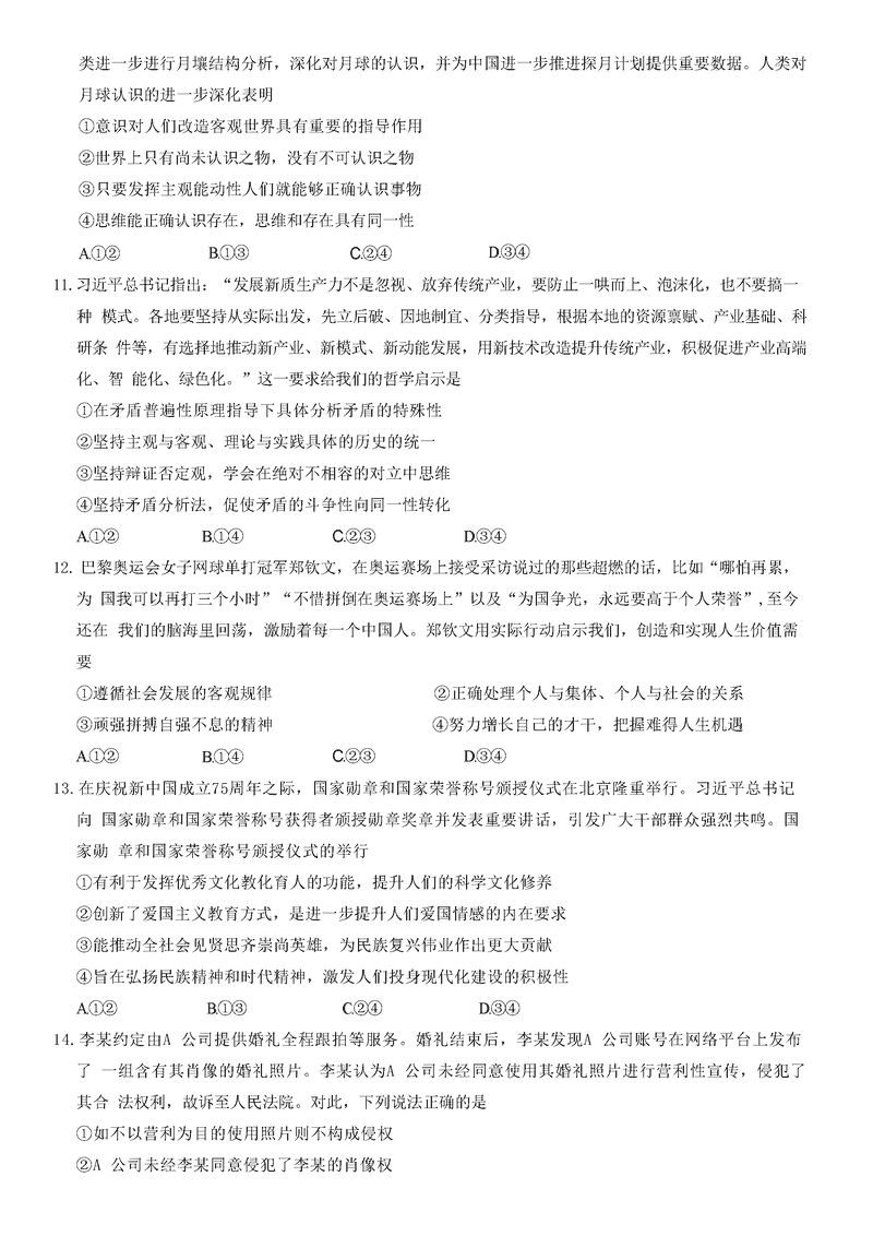 政治试题及答案解析