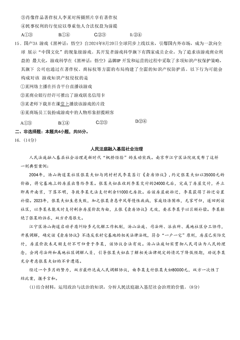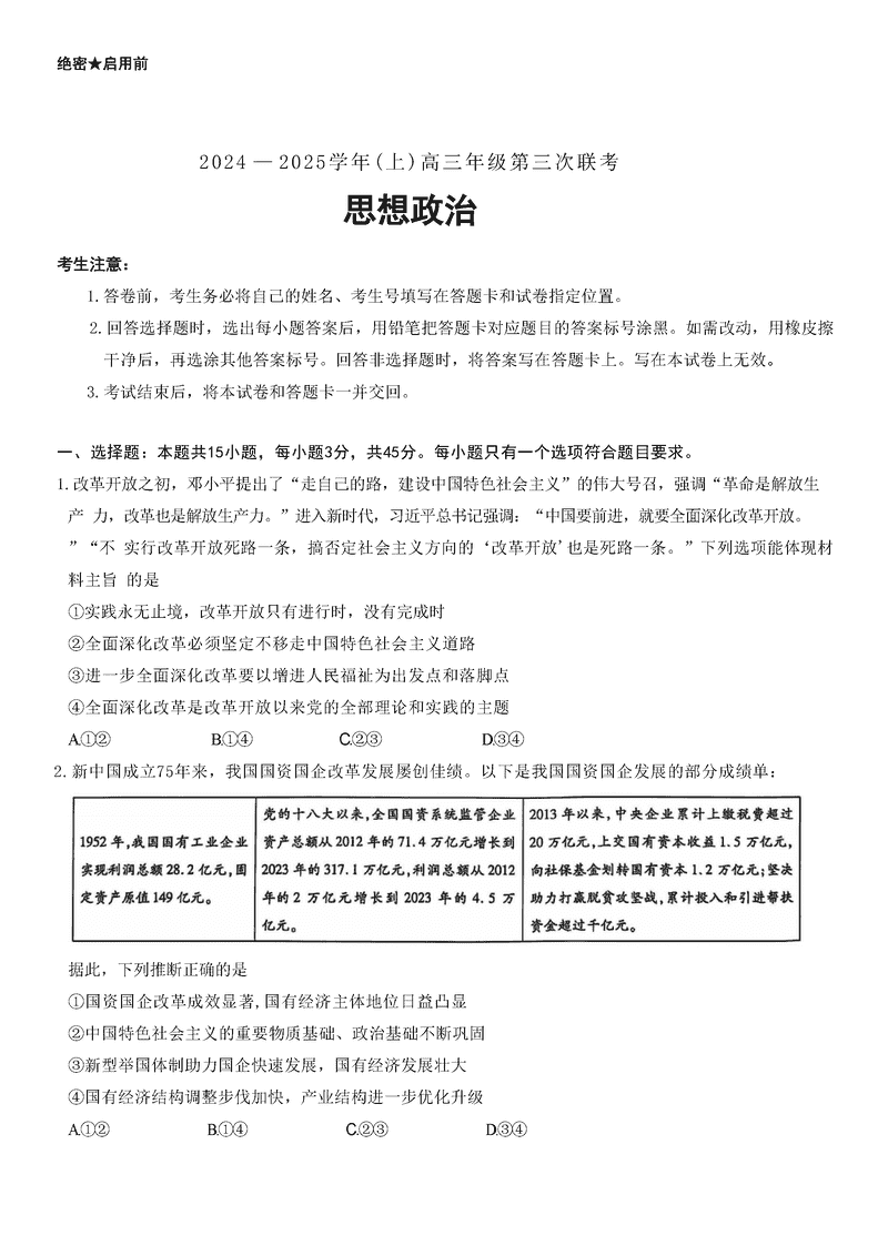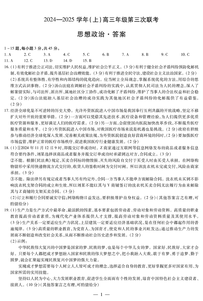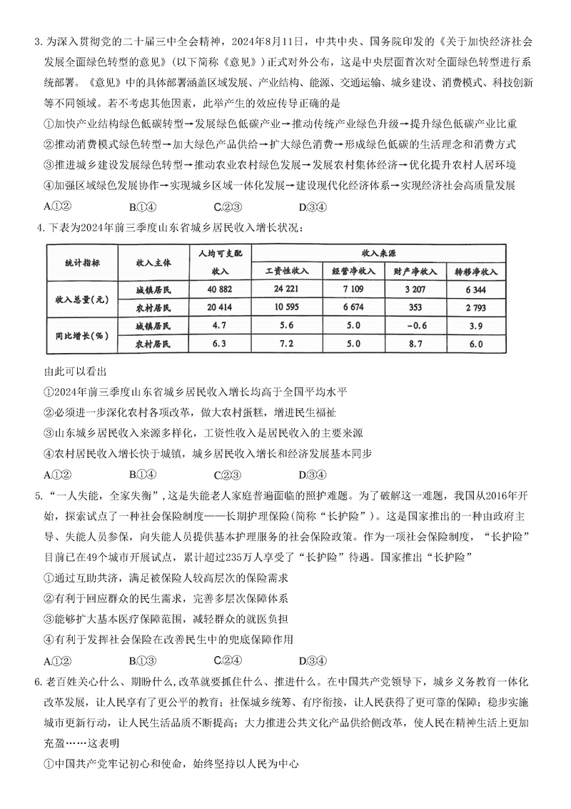 山东齐鲁名校联盟天一大联考2024年12月高三第三次联考政治试题及答案