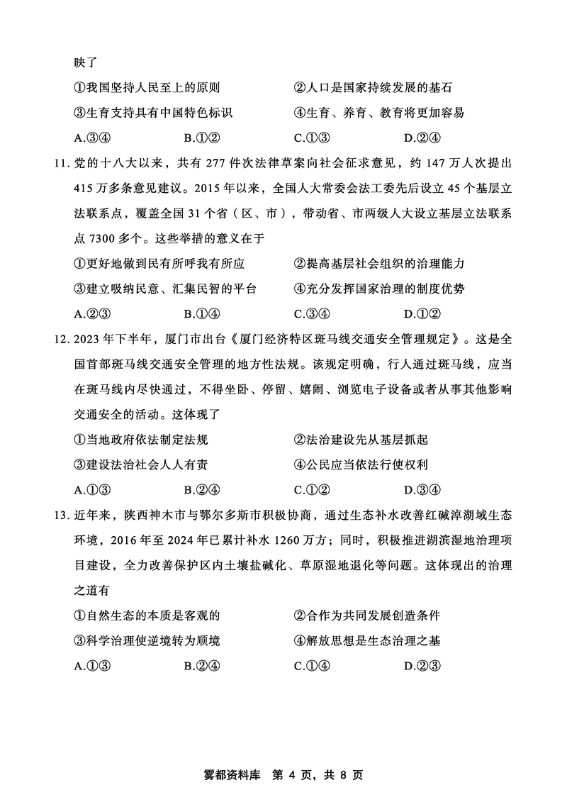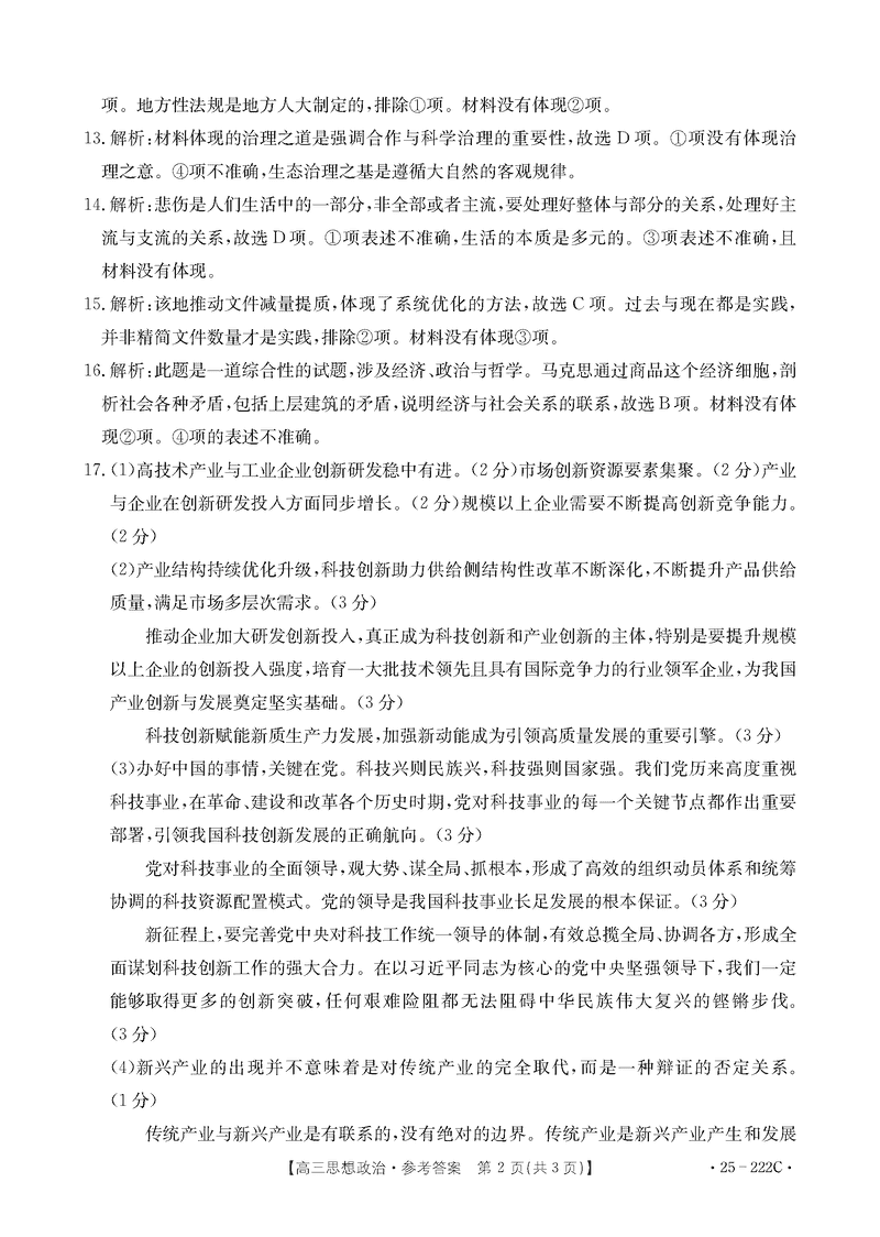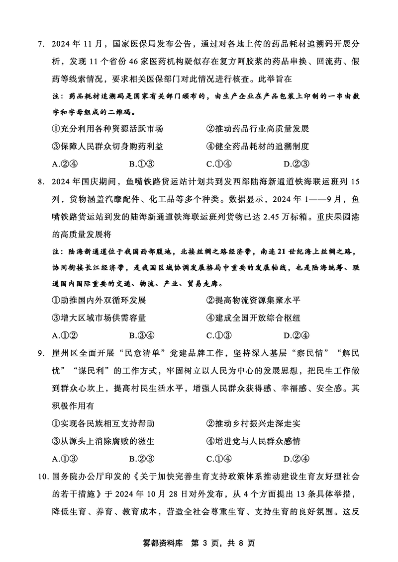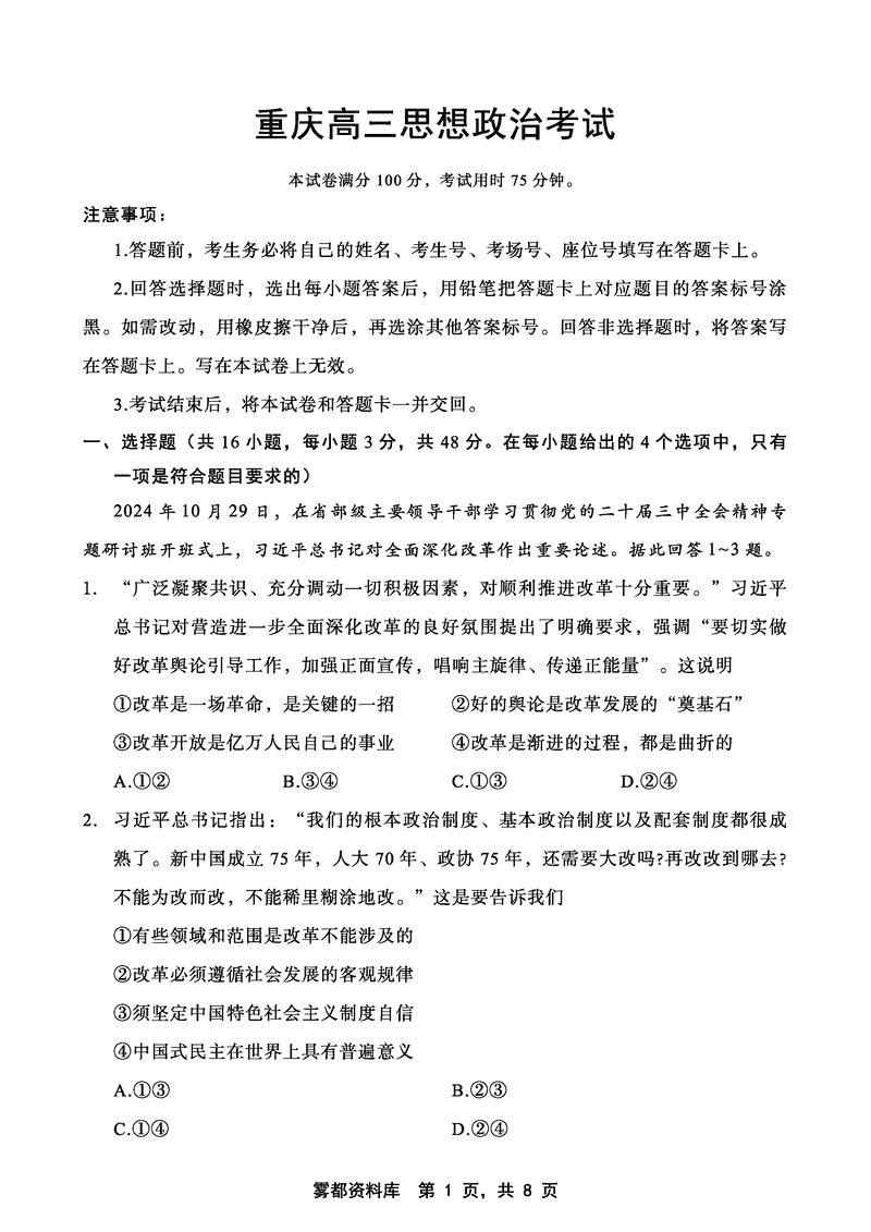 重庆好教育联盟2025届高三12月金太阳联考政治试题及答案