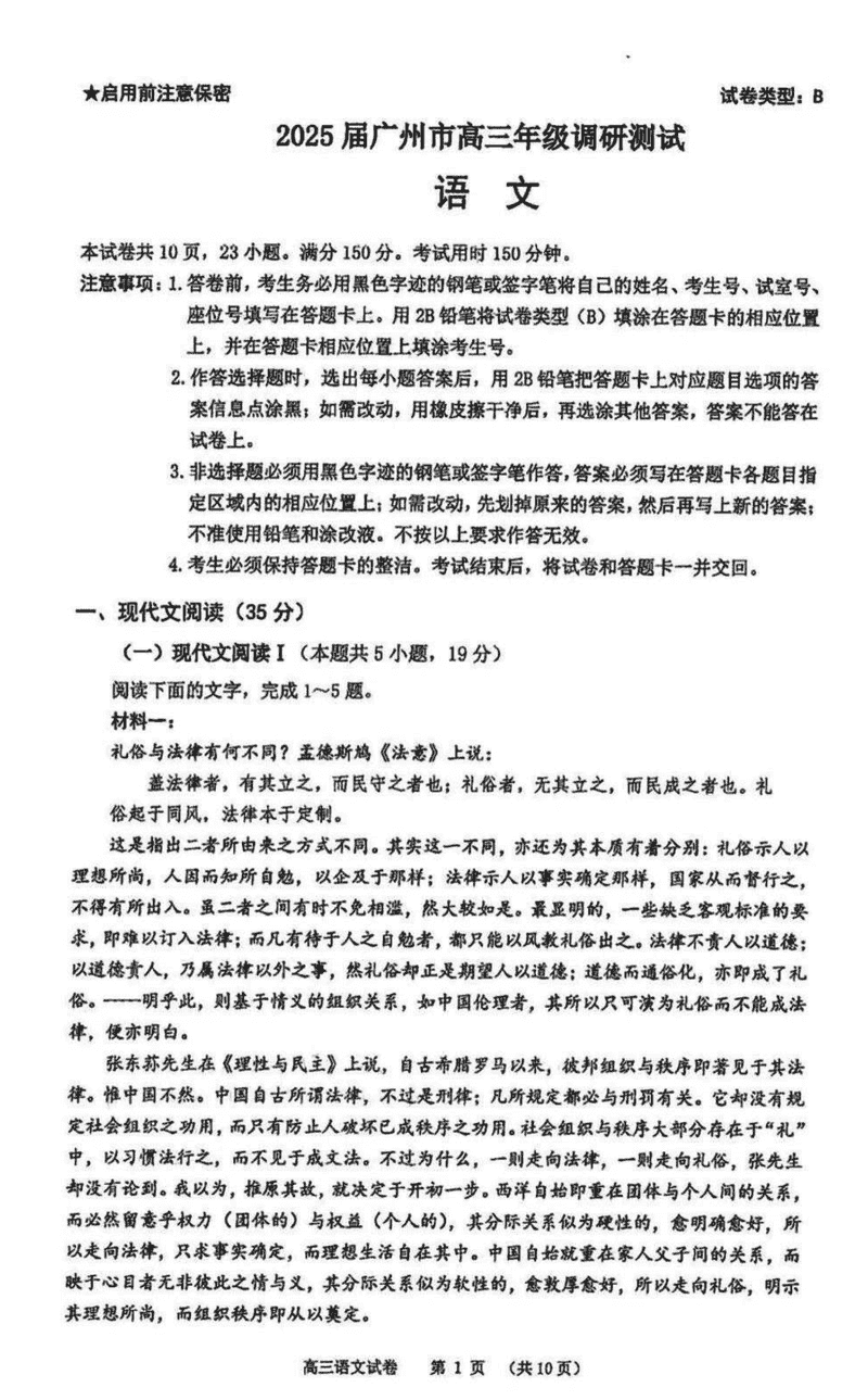 2025届广州零模高三12月调研测试语文试题及答案 时间:2024-12-24 广东 语文试题 2025届广州零模高三12月调研测试语文考试已于近日开考,为方便考生考后及时查看考试情况,查漏补缺、弥补不足,本文整理了试题答案解析相关信息! 汇总:2025届广州零模高三12月调研测试试题及答案汇总 语文试题及答案解析