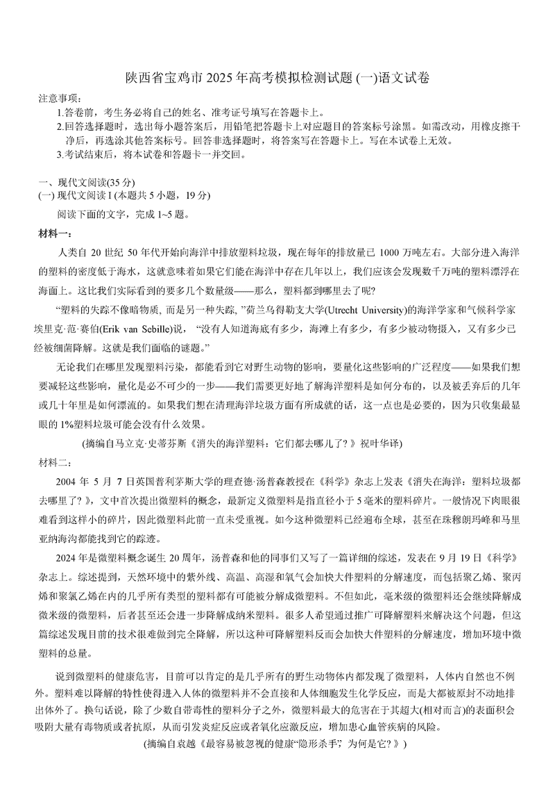 陕西宝鸡2025届高三上学期一模语文试题及答案 时间:2024-12-24 陕西 语文试题 陕西宝鸡2025届高三上学期一模语文考试已于近日开考,为方便考生考后及时查看考试情况,查漏补缺、弥补不足,本文整理了试题答案解析相关信息! 汇总:陕西宝鸡2025届高三上学期一模试题及答案汇总 语文试题及答案解析