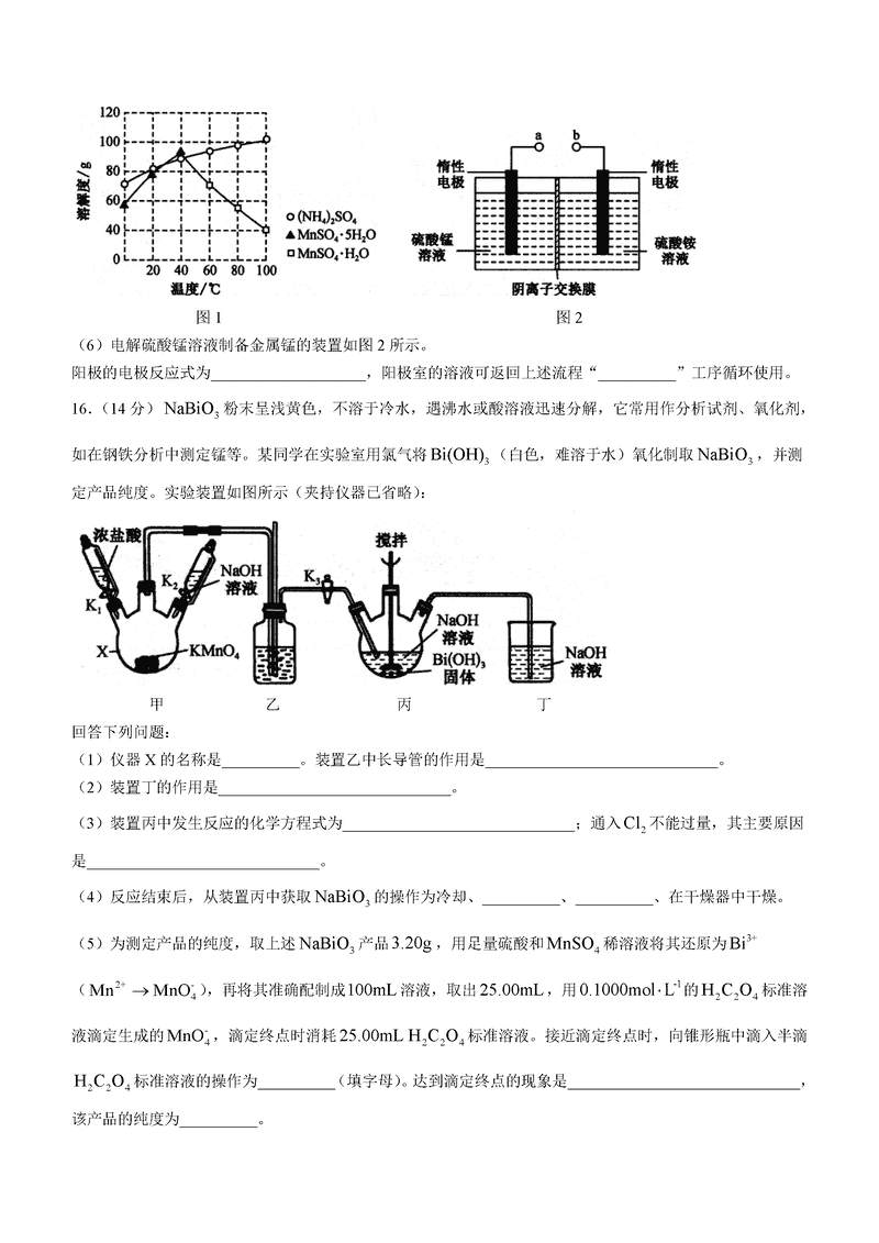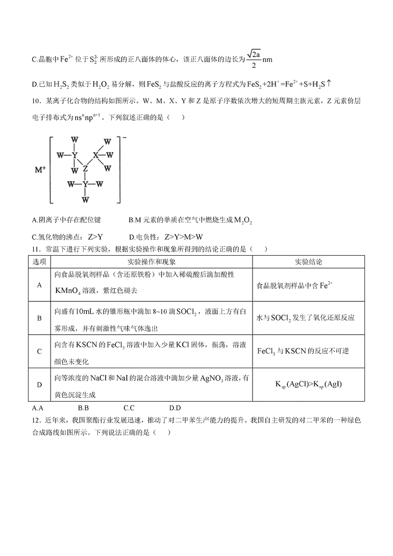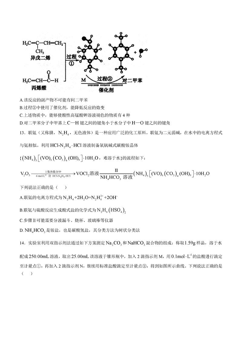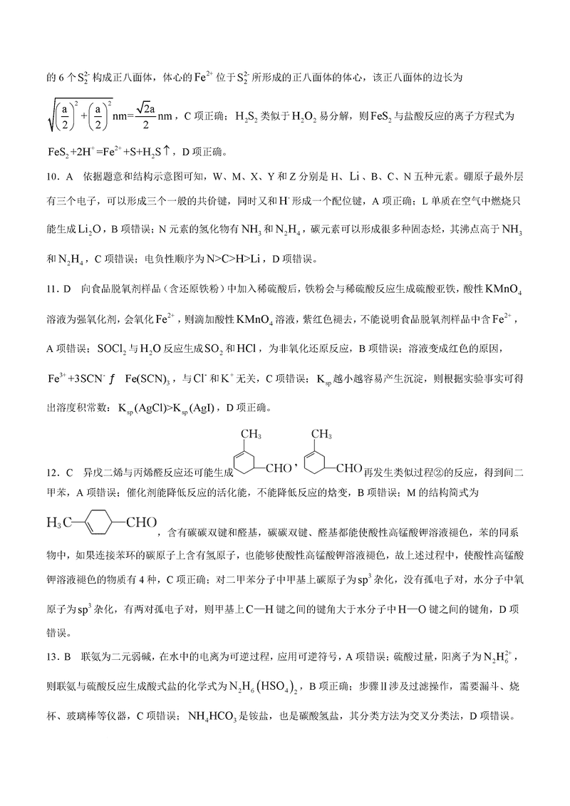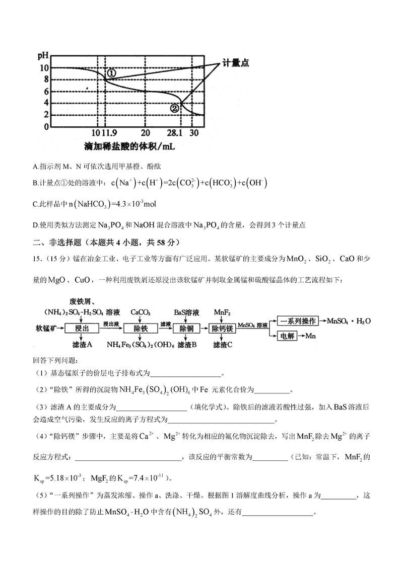 山西三晋卓越联盟2024年12月高三质检化学试题及答案