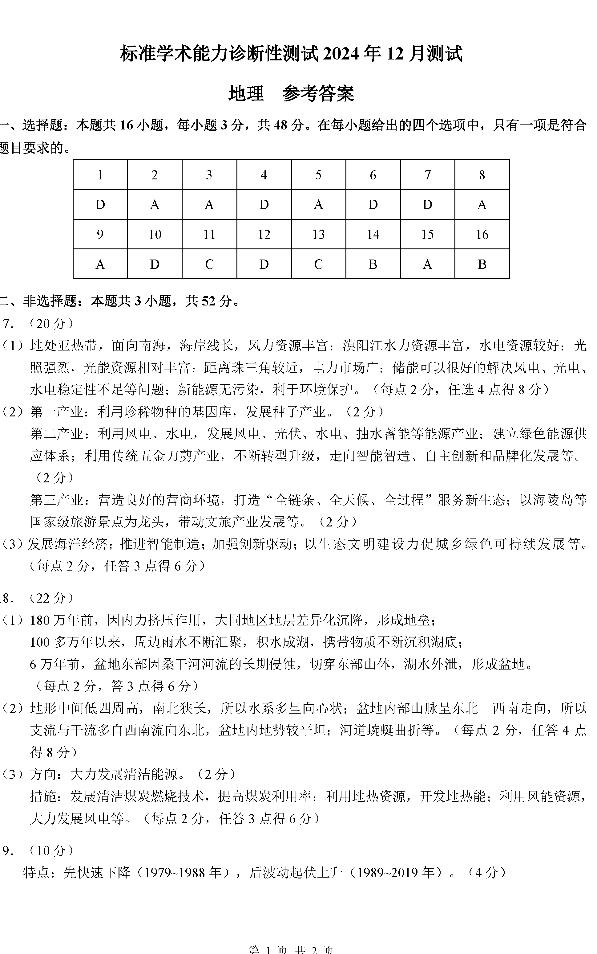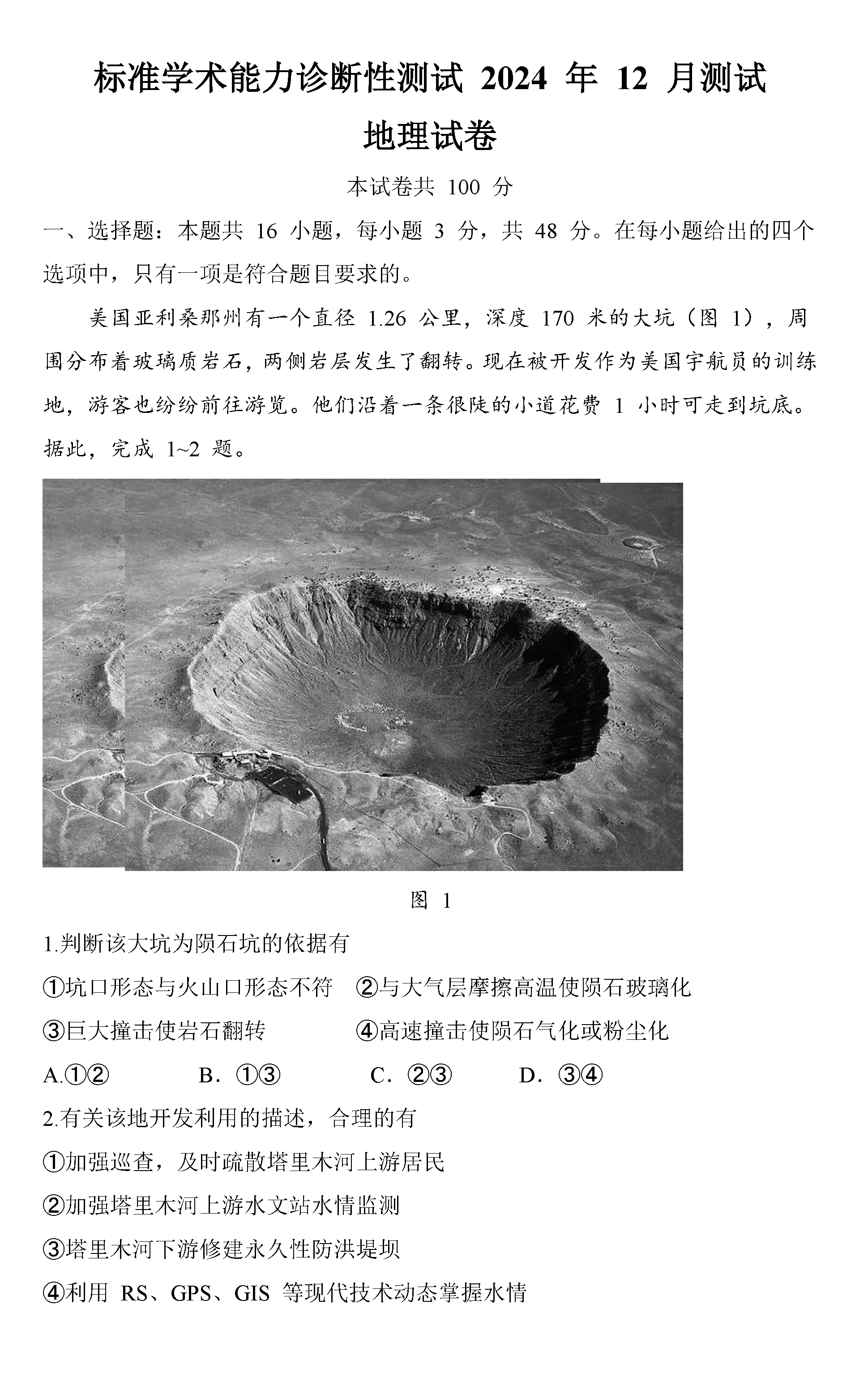 中学生标准学术能力诊断性测试(TDA)2024-2025学年高三上12月测试地理考试已于近日开考,为方便考生考后及时查看考试情况,查漏补缺、弥补不足,本文整理了试题答案解析相关信息!