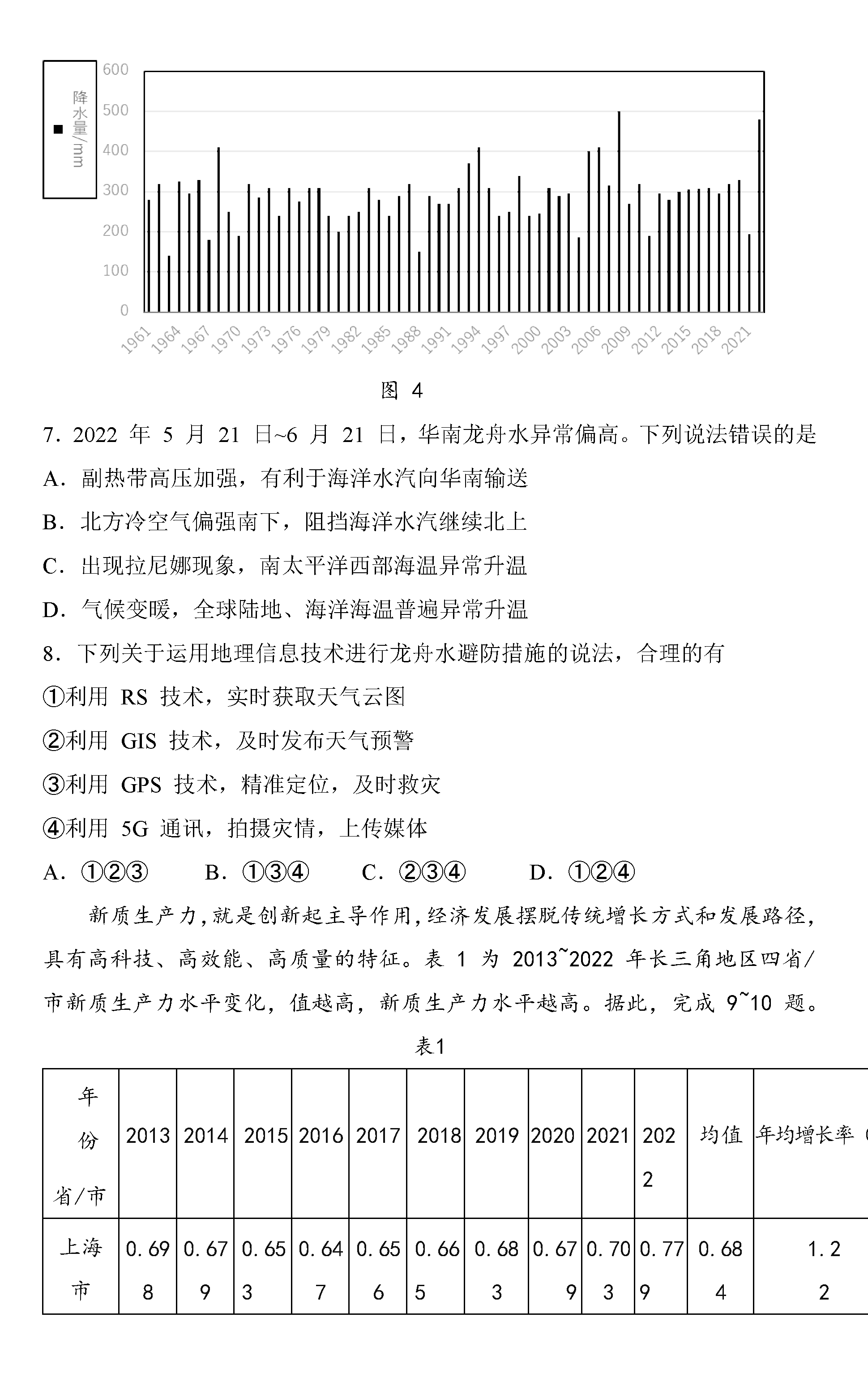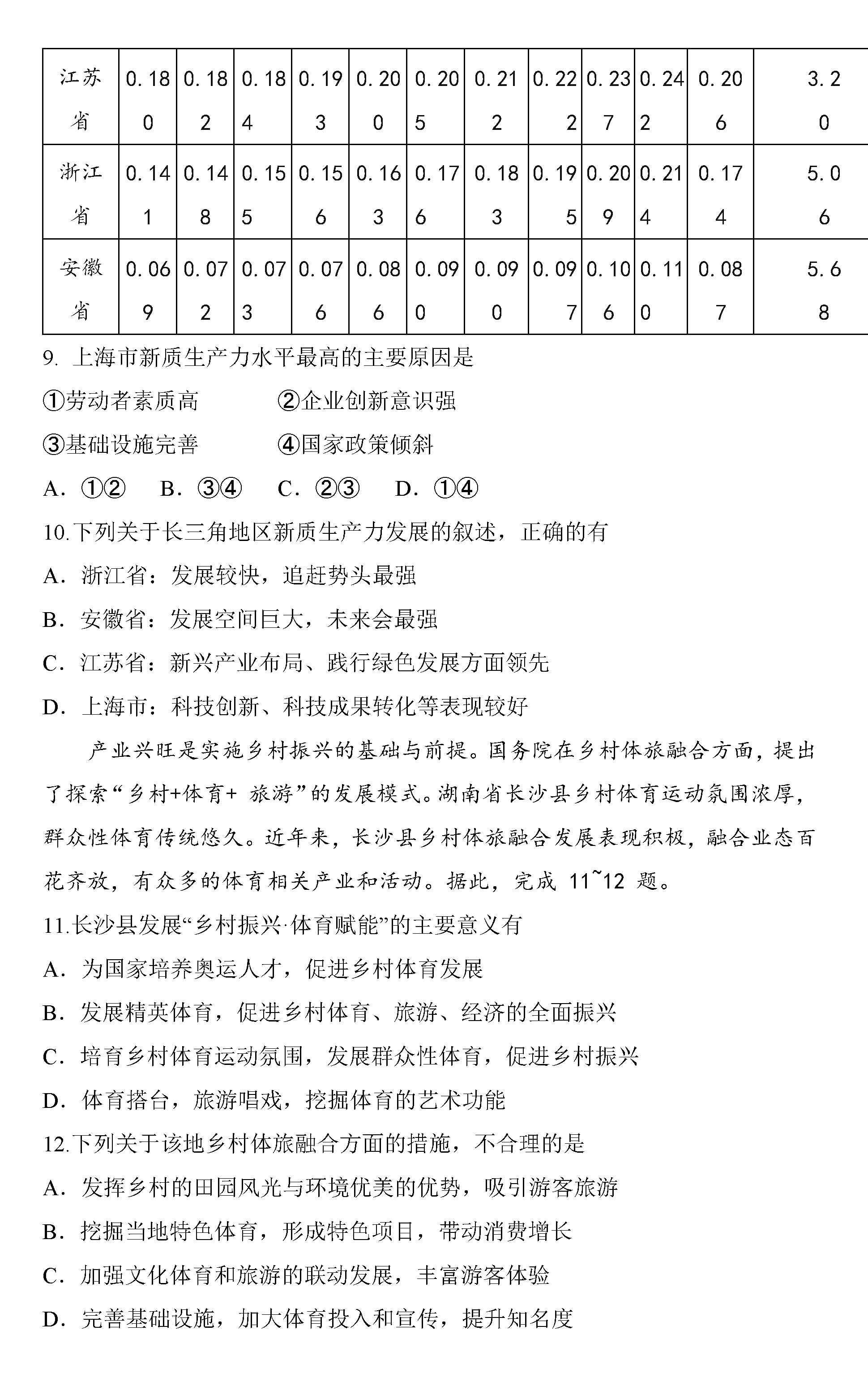 中学生标准学术能力诊断性测试2024-2025学年高三上12月测试地理试题及答案