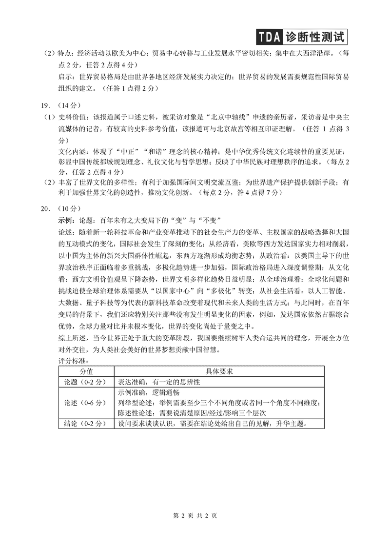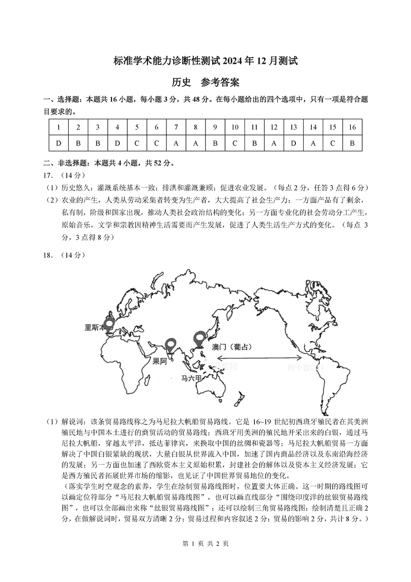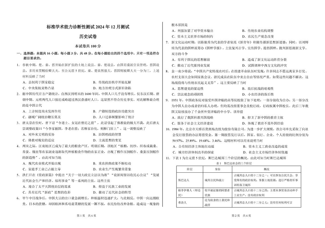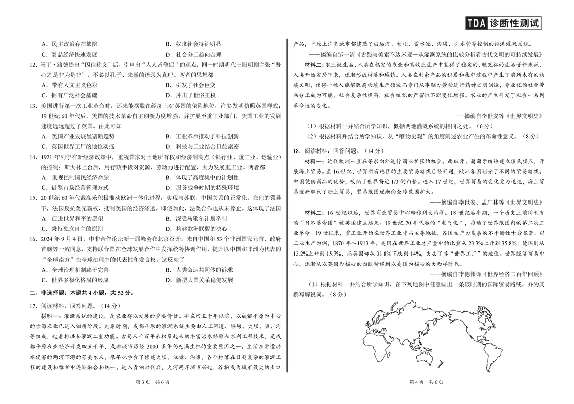 中学生标准学术能力诊断性测试(TDA)2024-2025学年高三上12月测试历史考试已于近日开考,为方便考生考后及时查看考试情况,查漏补缺、弥补不足,本文整理了试题答案解析相关信息!