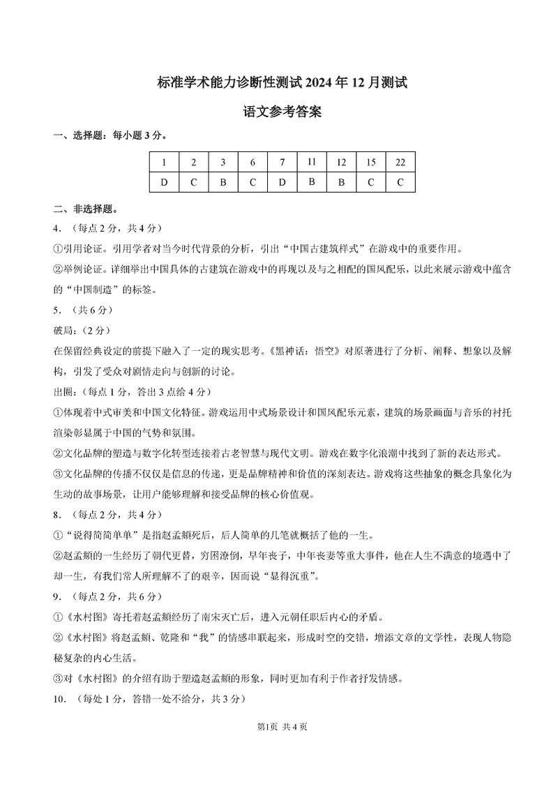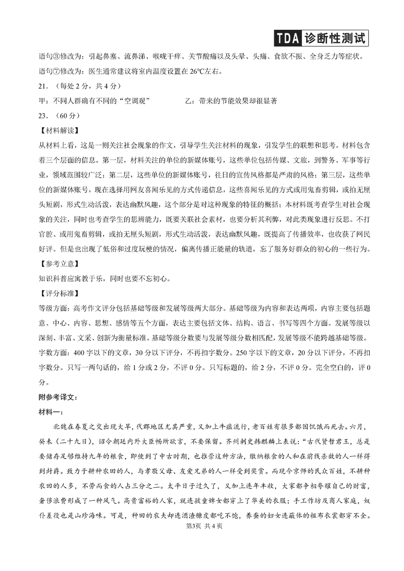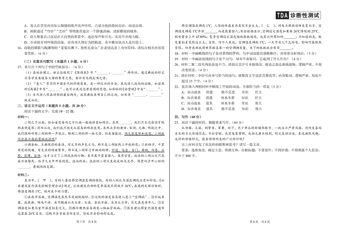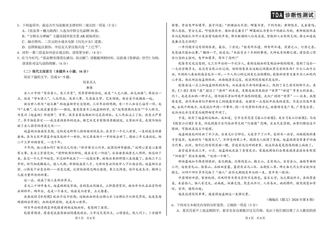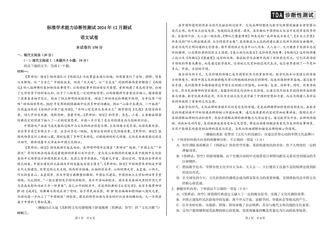 中学生标准学术能力诊断性测试(TDA)2024-2025学年高三上12月测试语文考试已于近日开考,为方便考生考后及时查看考试情况,查漏补缺、弥补不足,本文整理了试题答案解析相关信息!