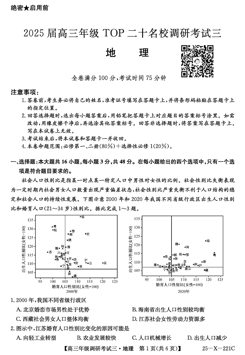 河南省TOP二十名校2025届高三上学期调研(三)地理考试已于近日开考,为方便考生考后及时查看考试情况,查漏补缺、弥补不足,本文整理了试题答案解析相关信息!