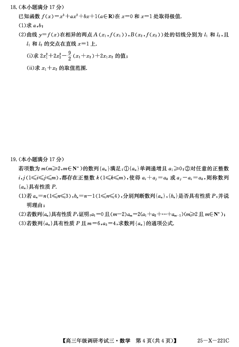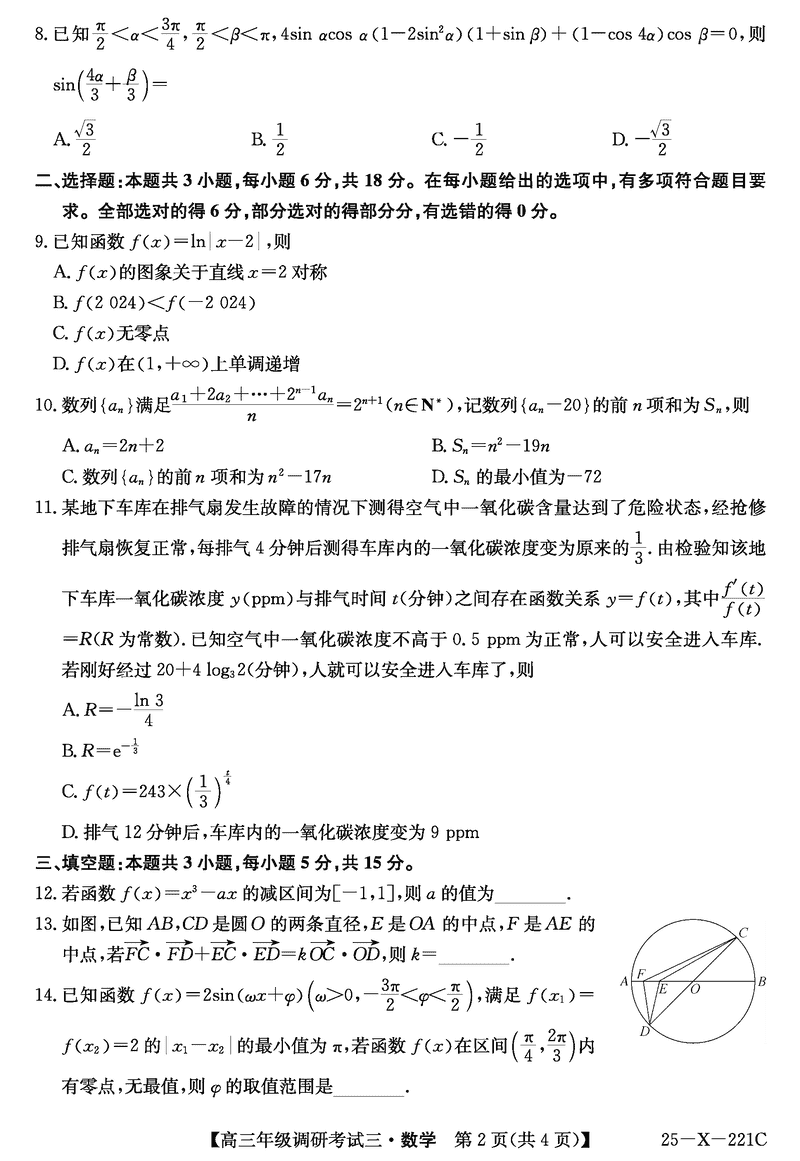河南省TOP二十名校2025届高三上学期调研(三)数学试题及答案