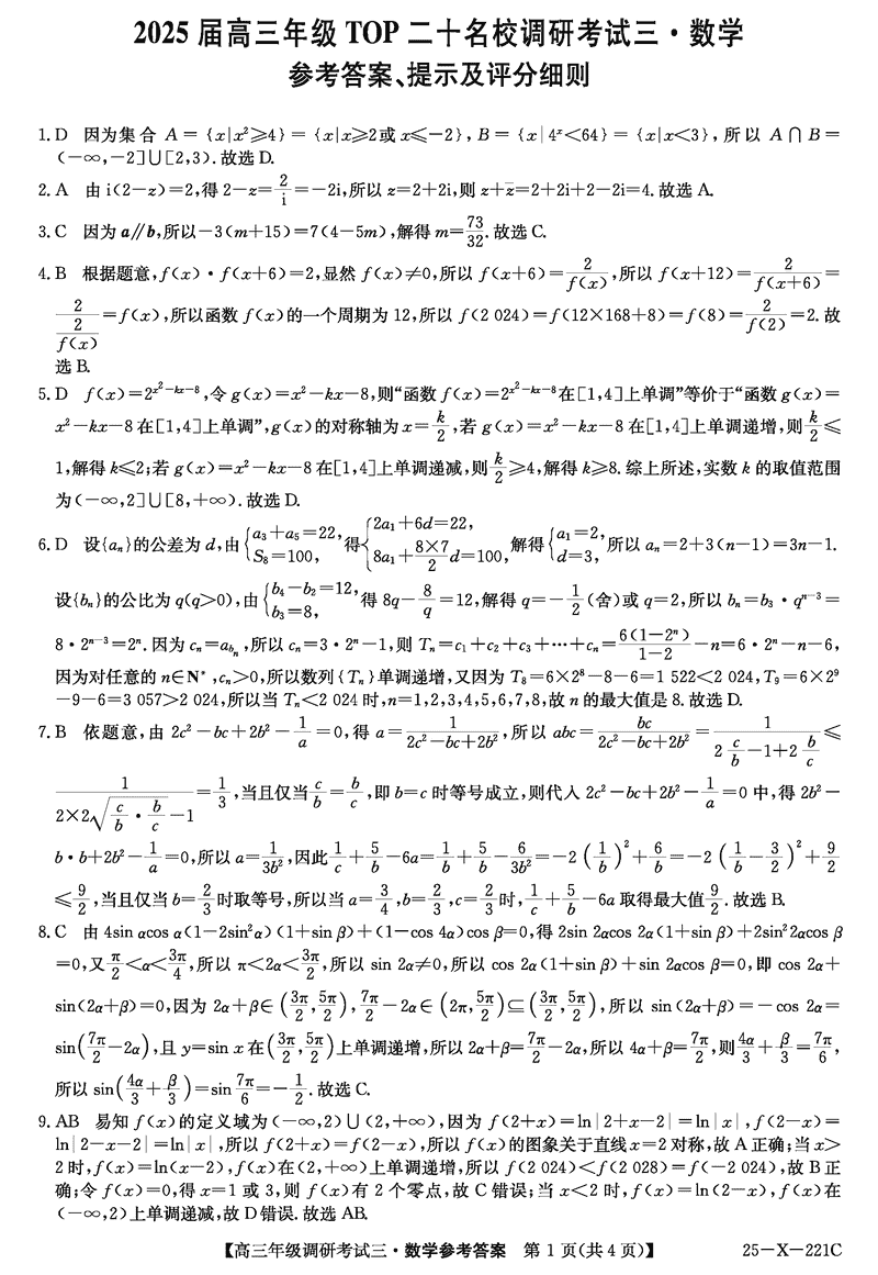 河南省TOP二十名校2025届高三上学期调研(三)数学考试已于近日开考,为方便考生考后及时查看考试情况,查漏补缺、弥补不足,本文整理了试题答案解析相关信息!