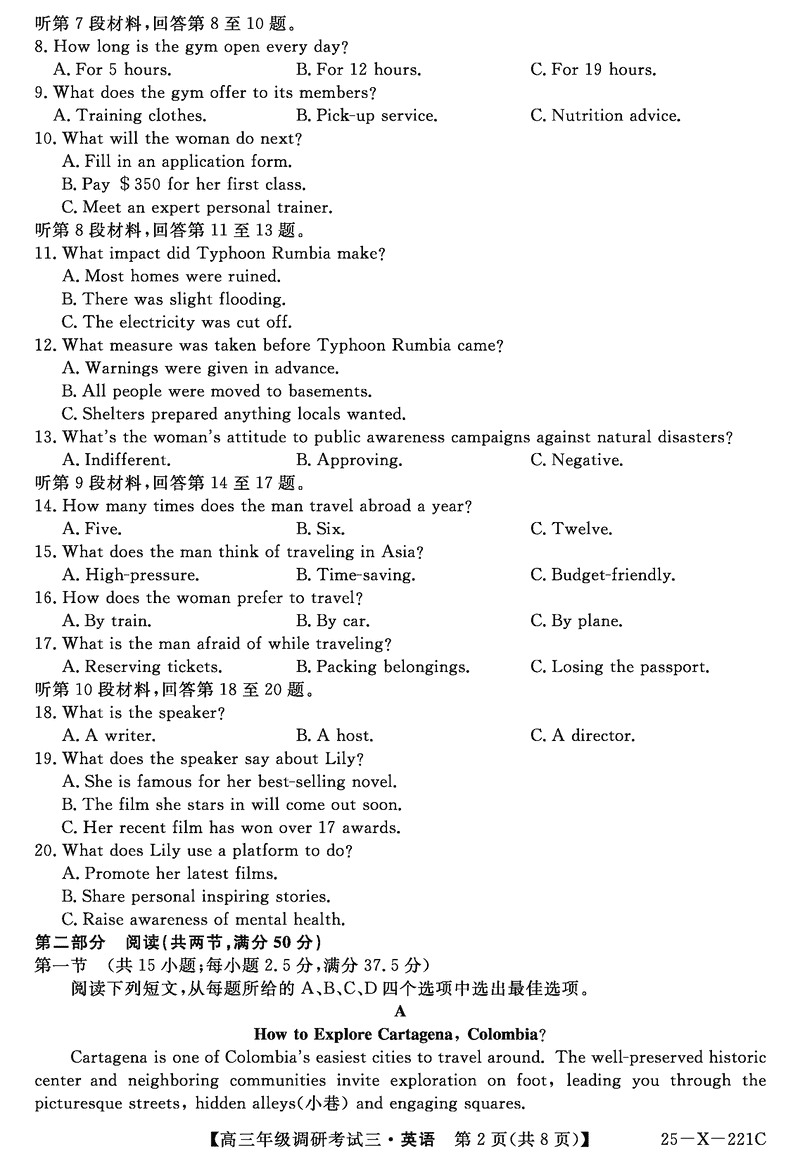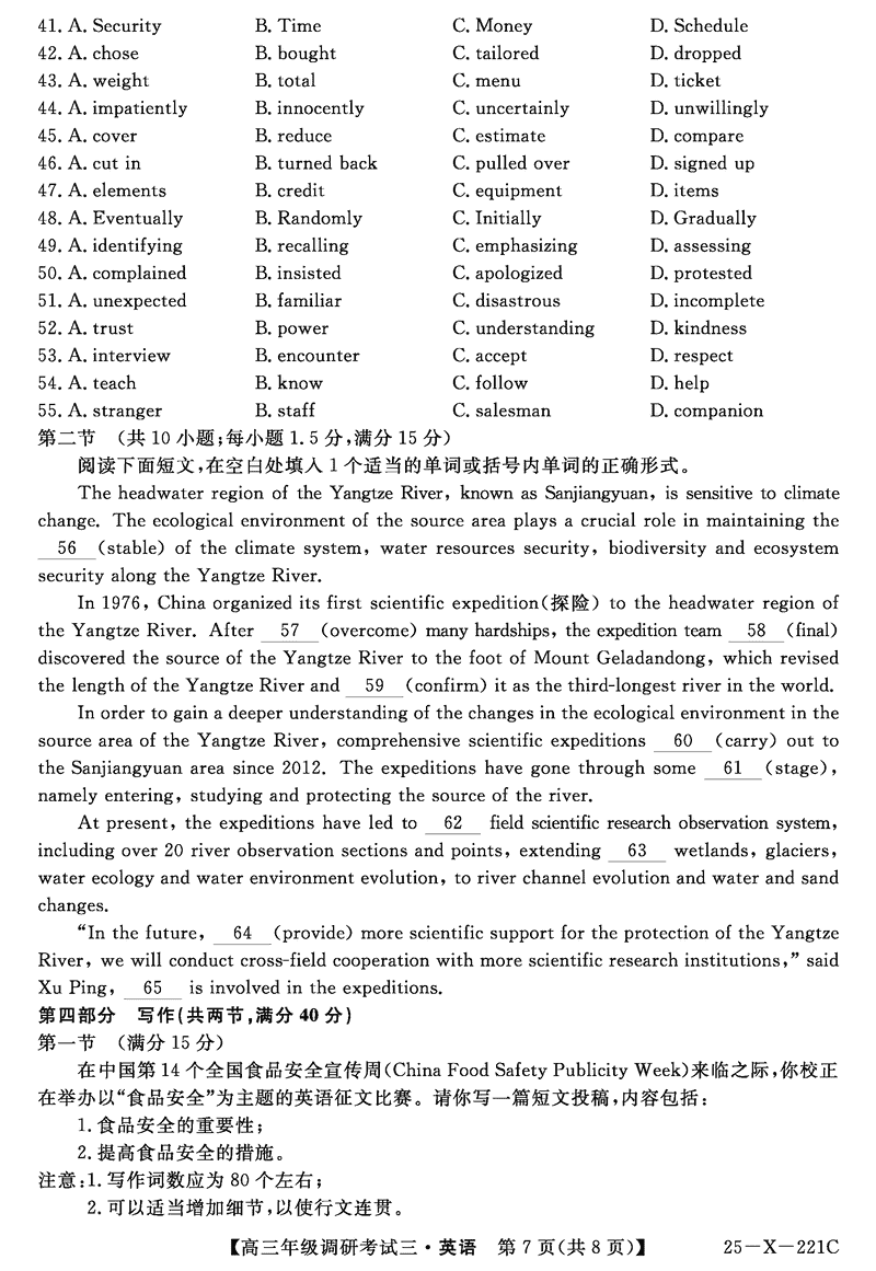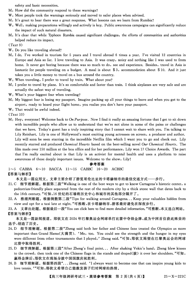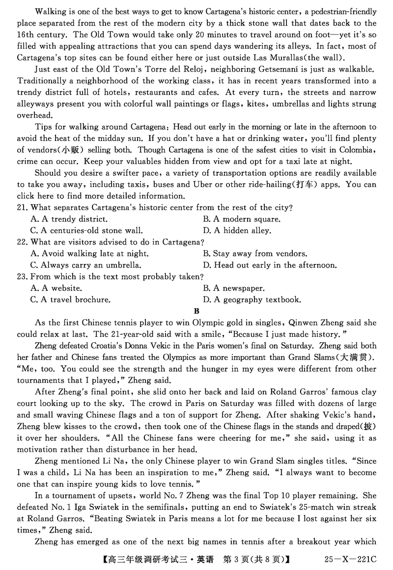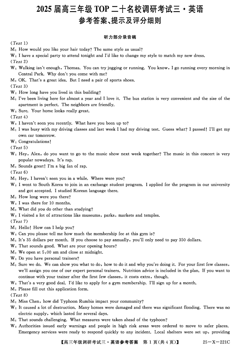 河南省TOP二十名校2025届高三上学期调研(三)英语考试已于近日开考,为方便考生考后及时查看考试情况,查漏补缺、弥补不足,本文整理了试题答案解析相关信息!