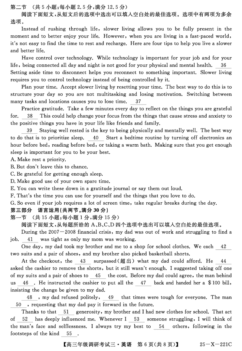 河南省TOP二十名校2025届高三上学期调研(三)英语试题及答案