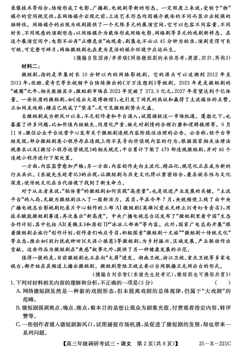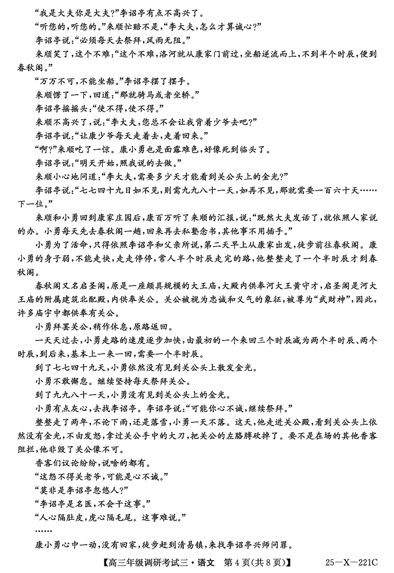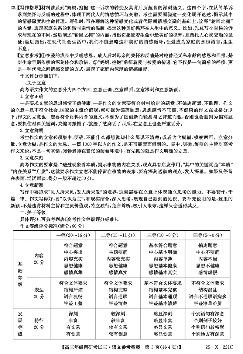 河南省TOP二十名校2025届高三上学期调研(三)语文试题及答案