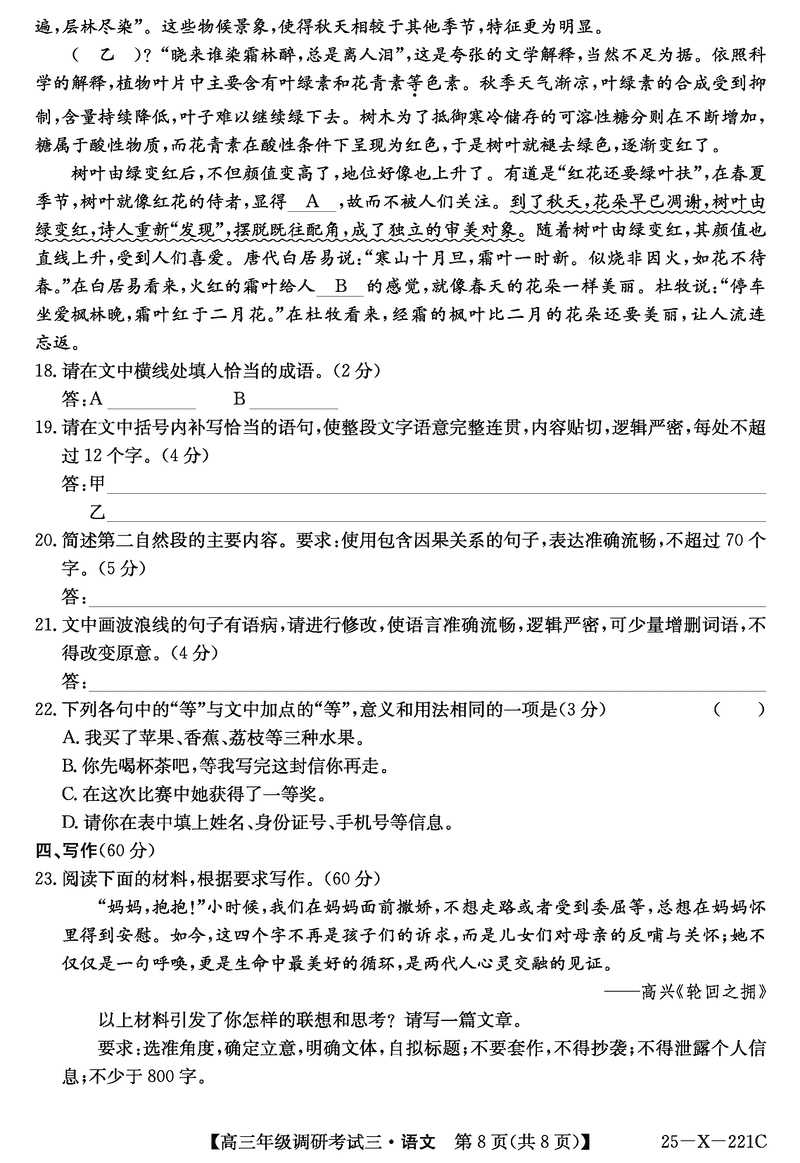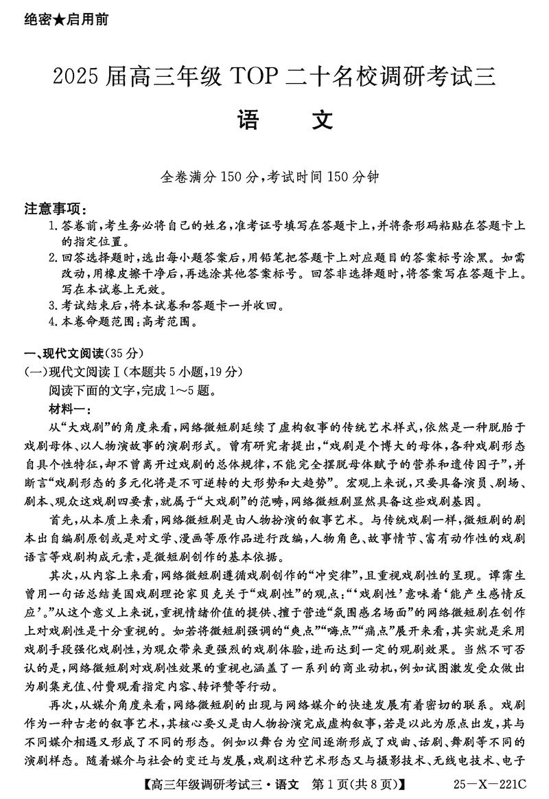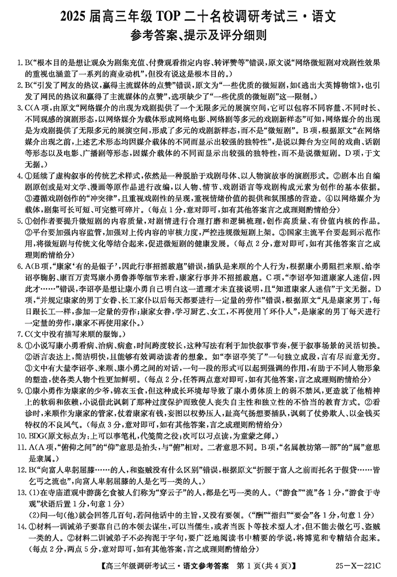 河南省TOP二十名校2025届高三上学期调研(三)语文考试已于近日开考,为方便考生考后及时查看考试情况,查漏补缺、弥补不足,本文整理了试题答案解析相关信息!