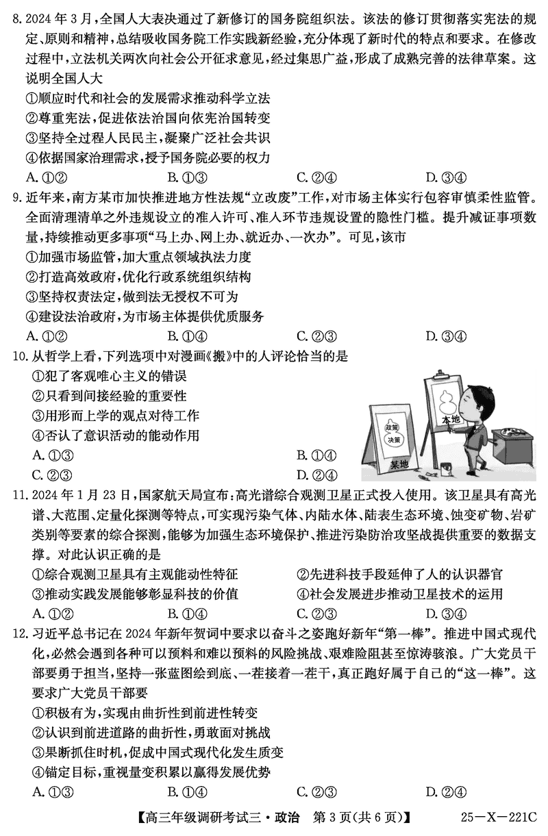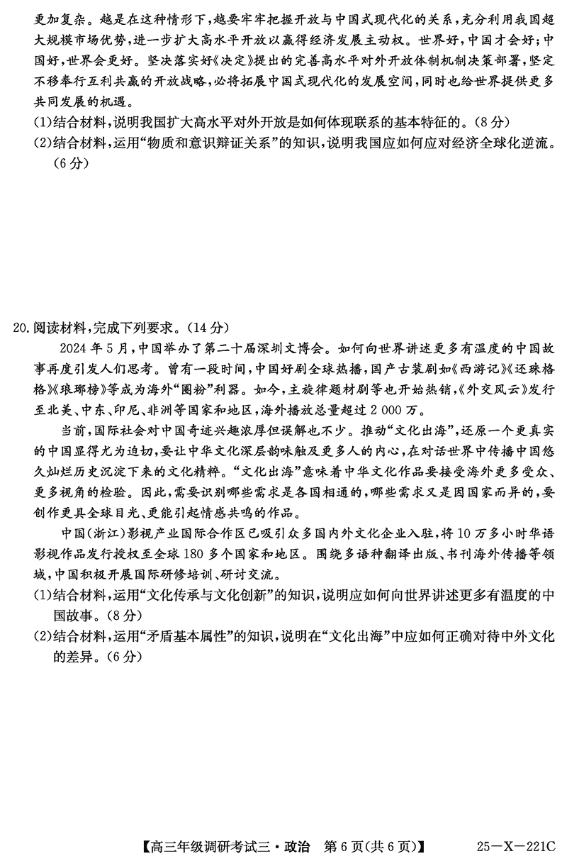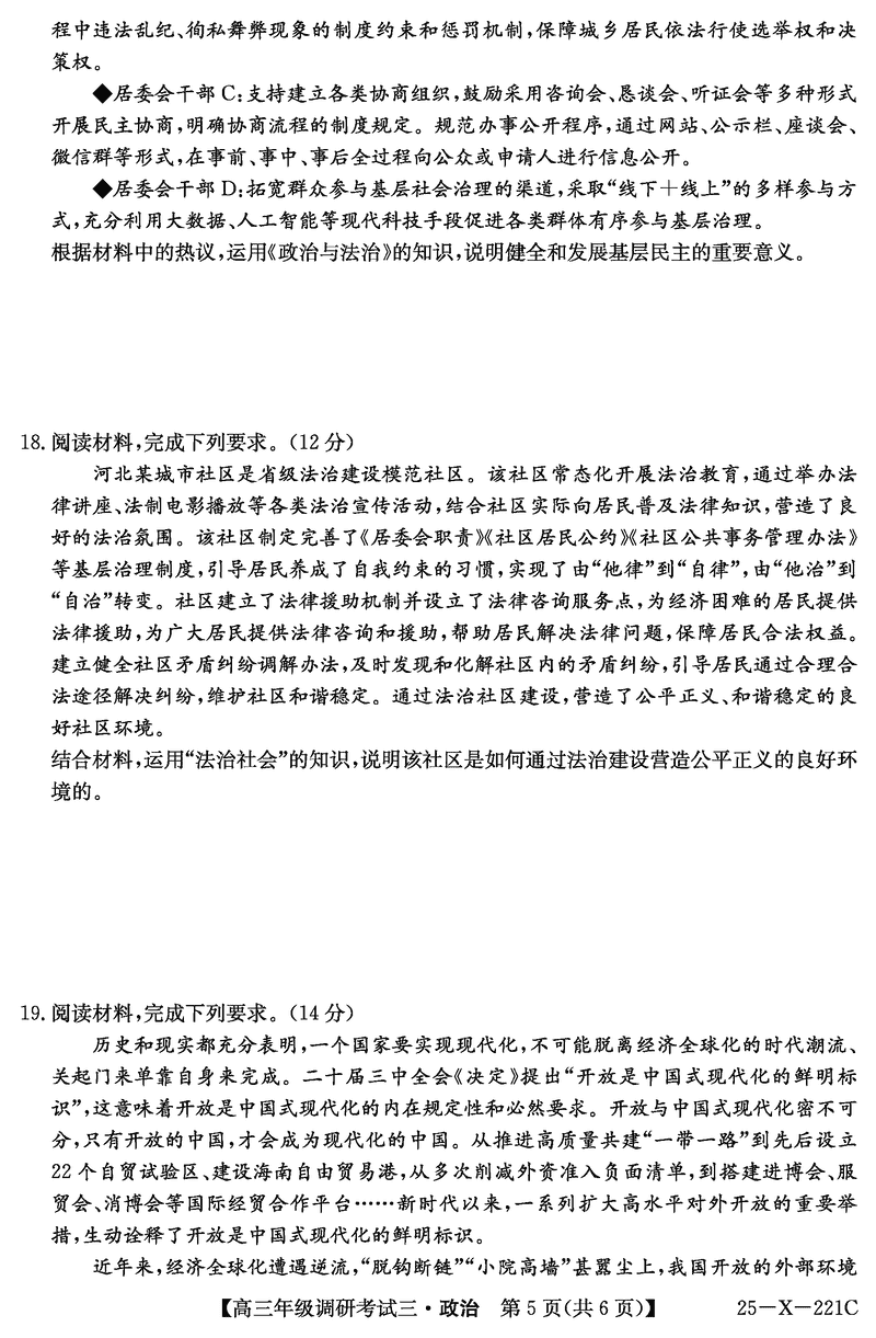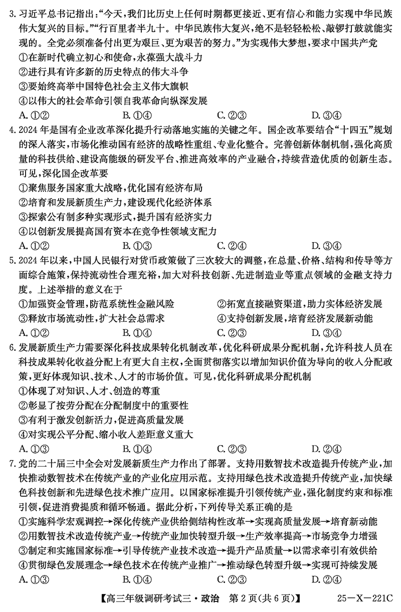 河南省TOP二十名校2025届高三上学期调研(三)政治试题及答案