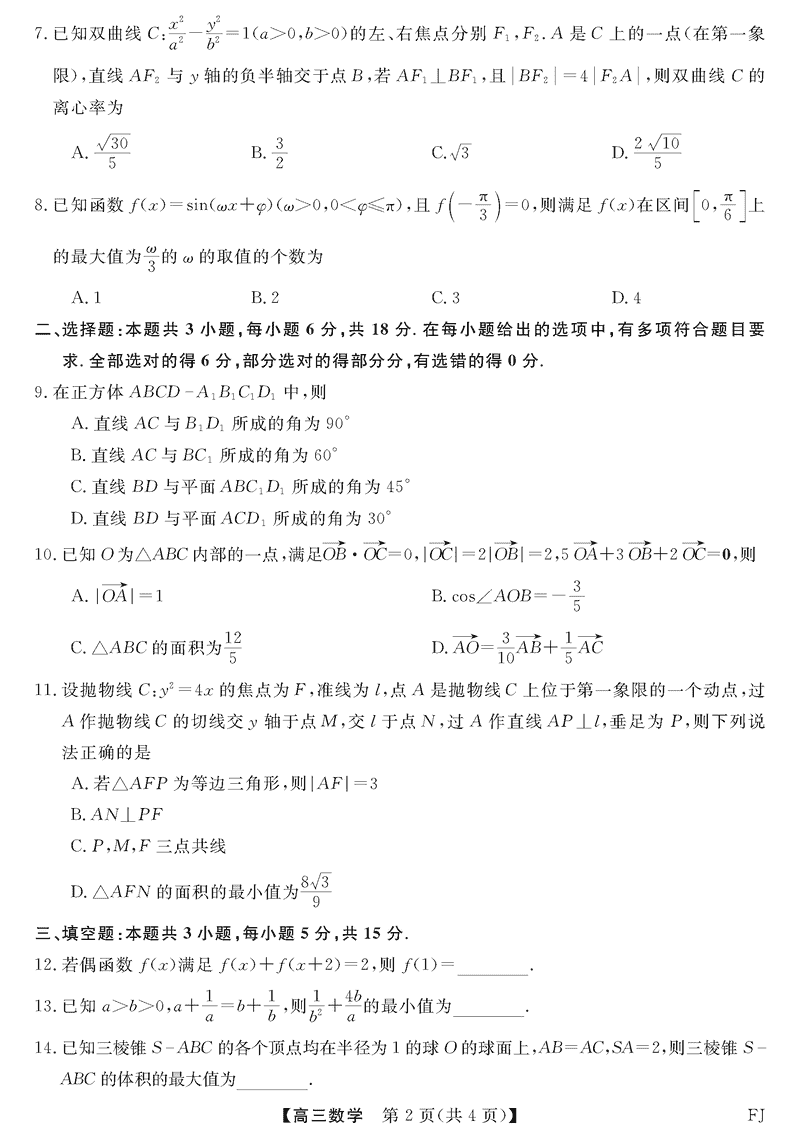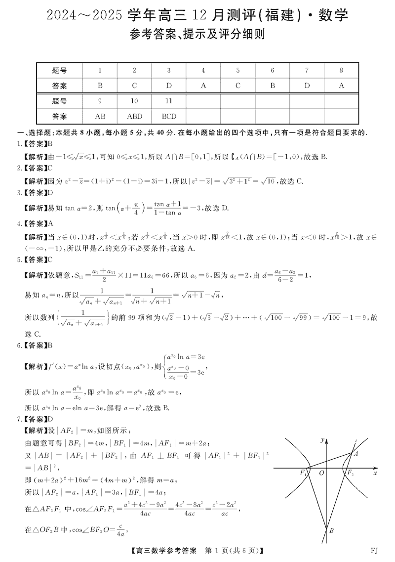 福建省金科大联考2024-2025学年高三12月测评数学考试已于近日开考,为方便考生考后及时查看考试情况,查漏补缺、弥补不足,本文整理了试题答案解析相关信息!