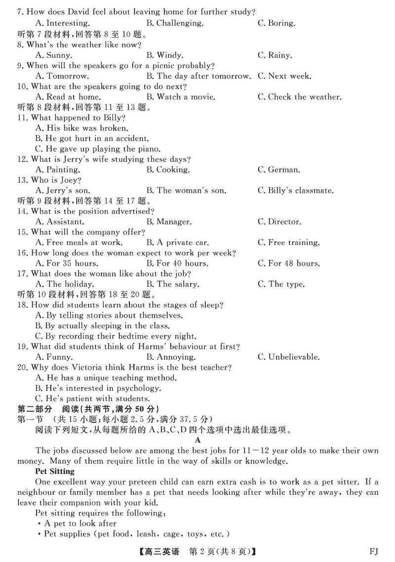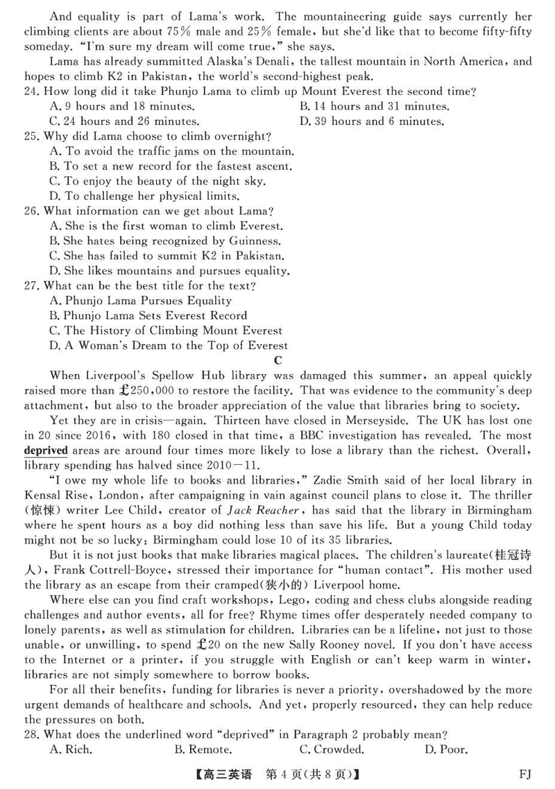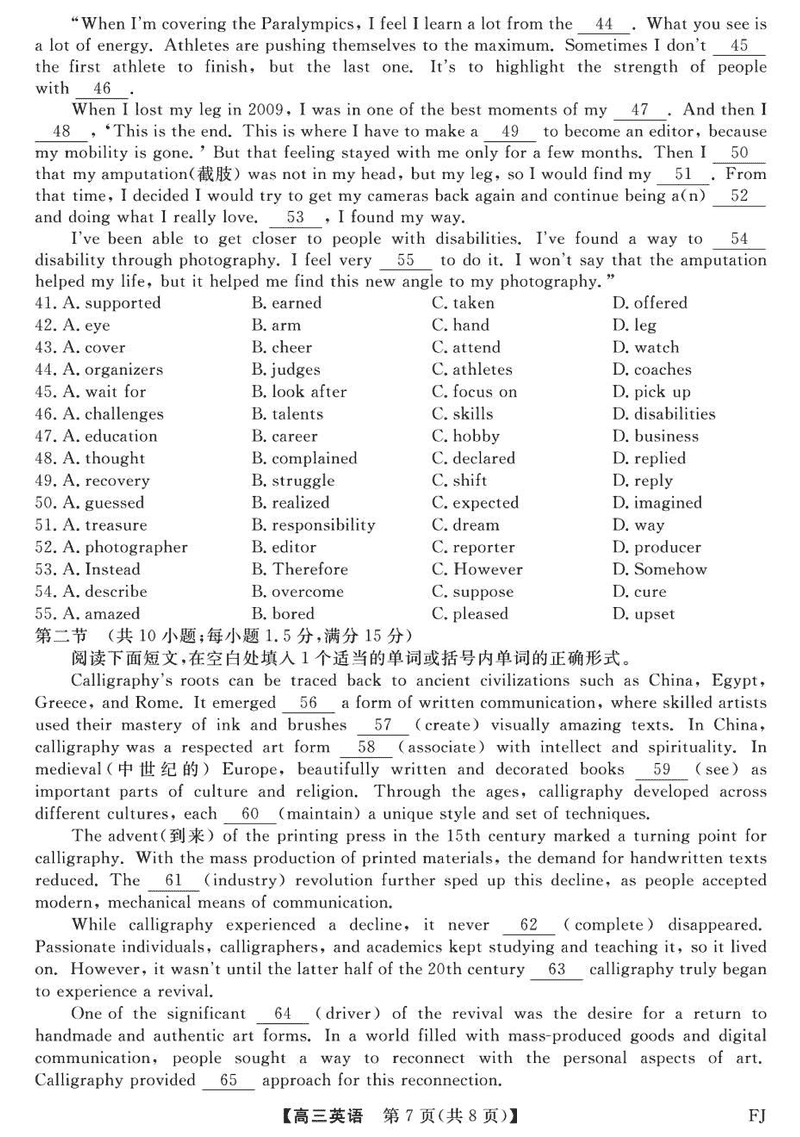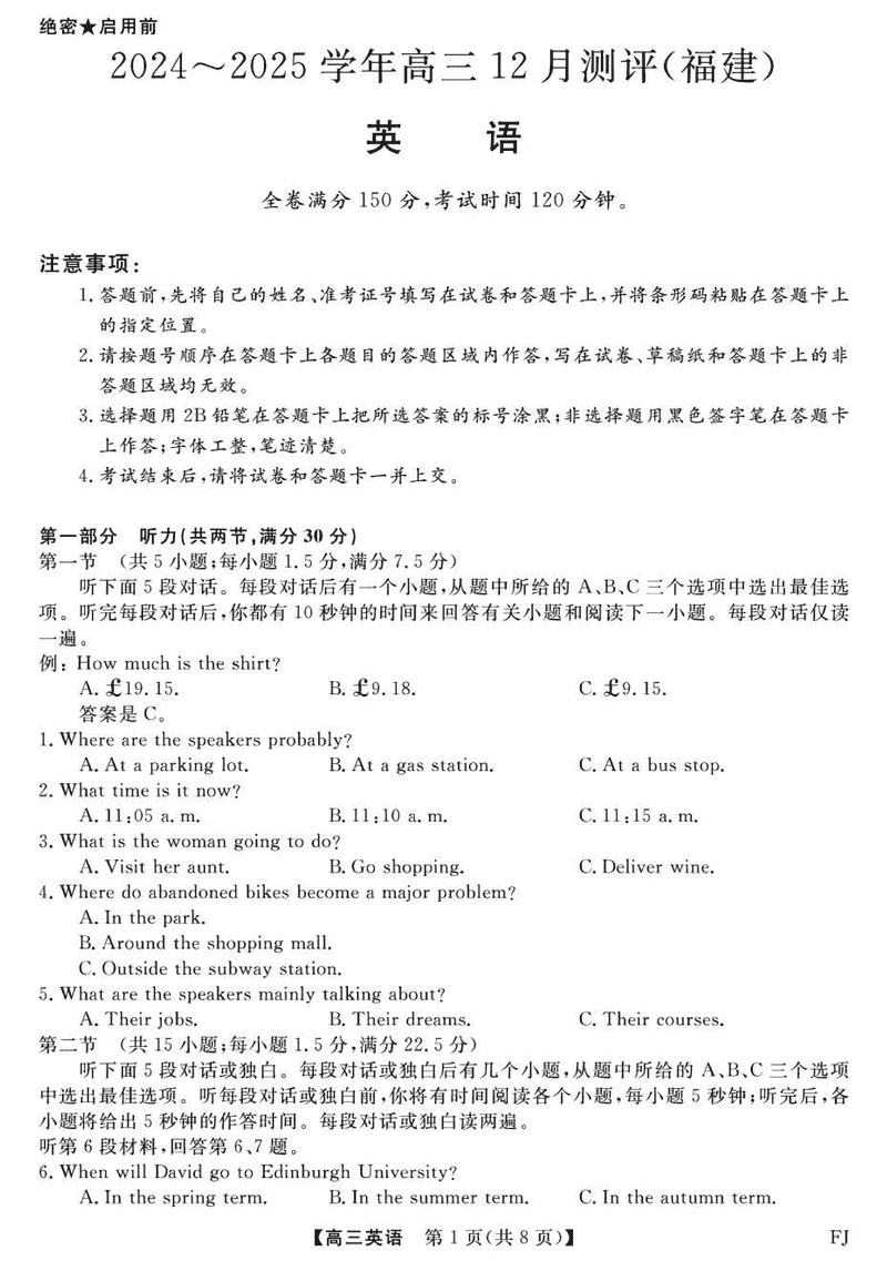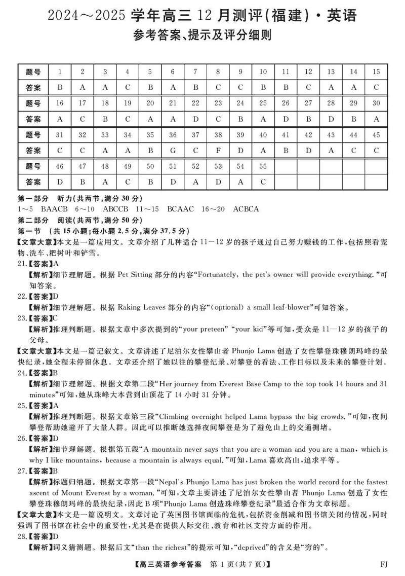 福建省金科大联考2024-2025学年高三12月测评英语考试已于近日开考,为方便考生考后及时查看考试情况,查漏补缺、弥补不足,本文整理了试题答案解析相关信息!