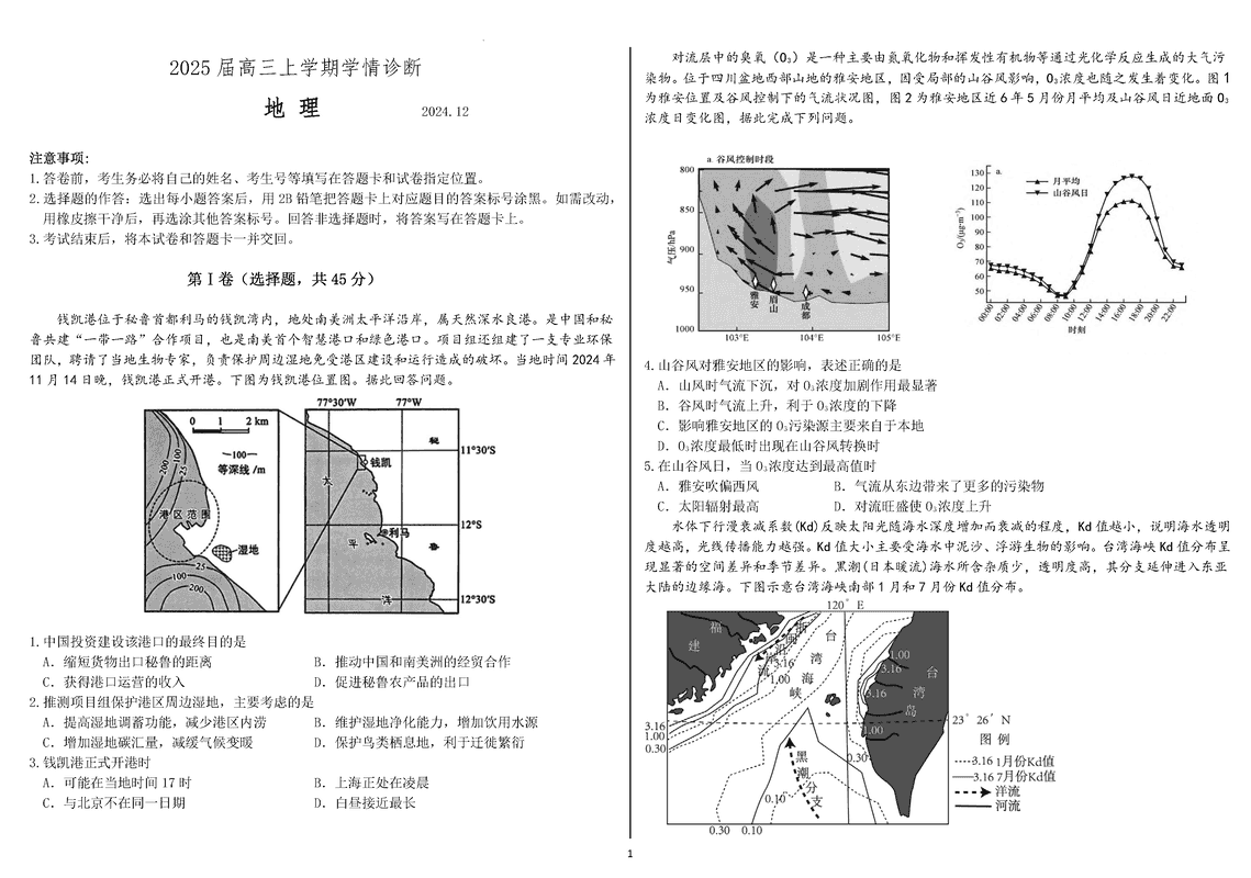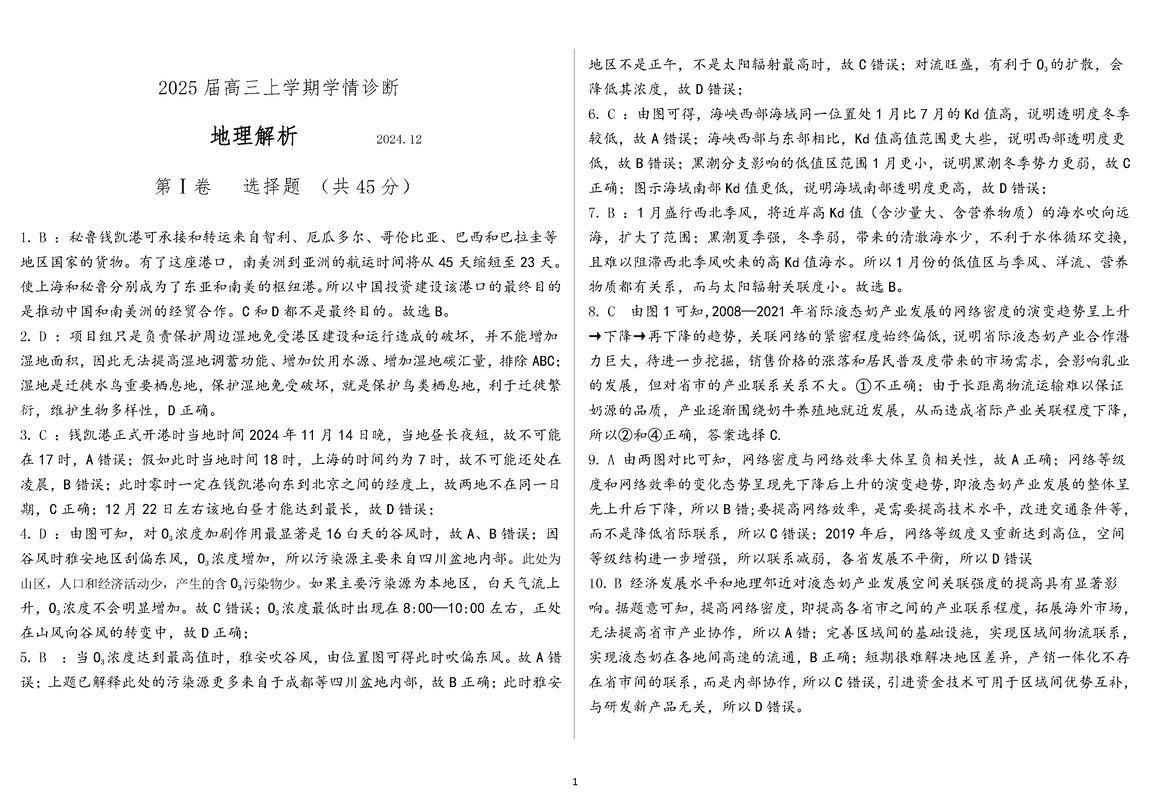 山东中学联盟百校大联考2025届高三上12月学情诊断地理试题及答案